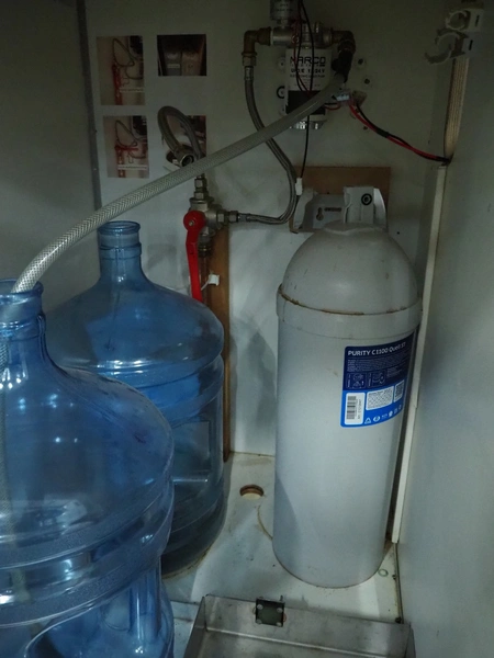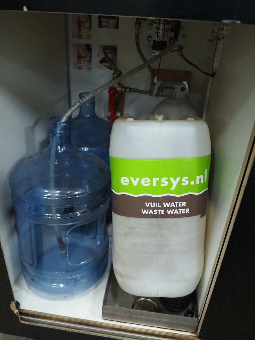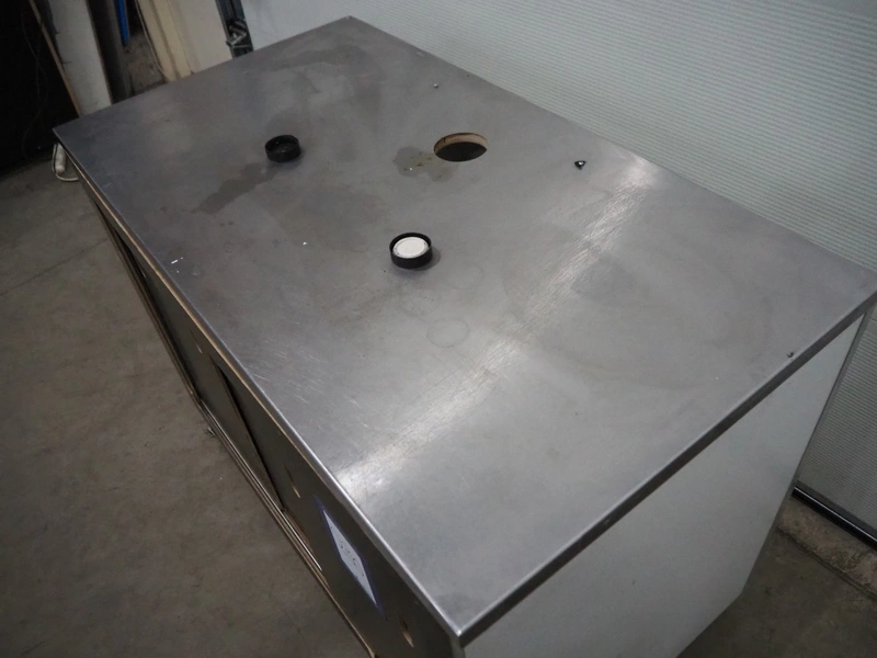 Water waste and use table for coffee machines, dimensions: 1400 mm x 760 mm x 1040 mm.