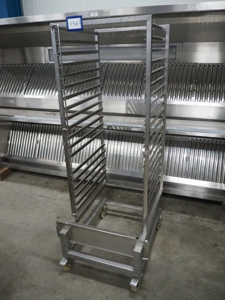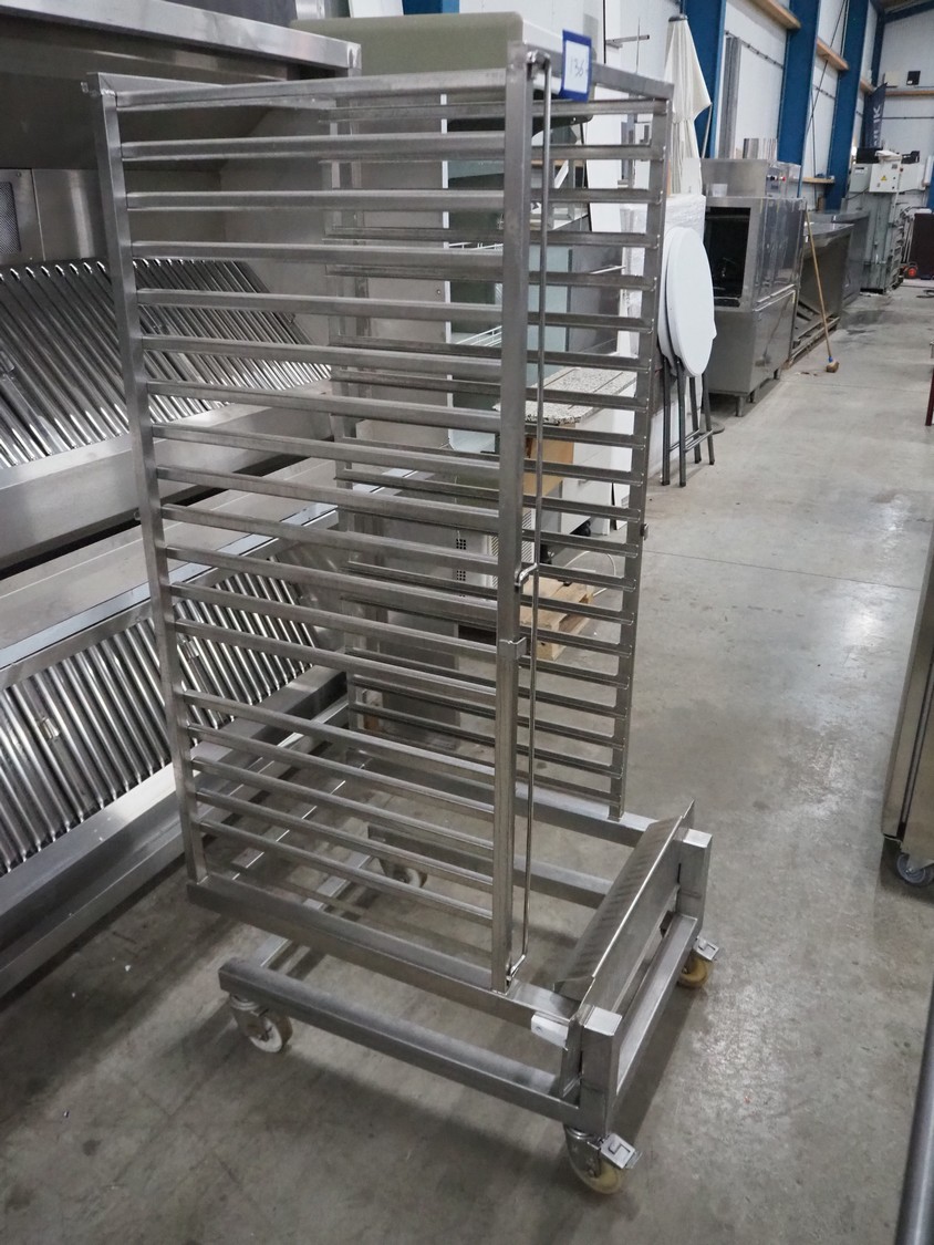 Mobile s/s oven rack, 20 floors, dimensions floors: (20x) 650 mm x 530 mm, total dimensions: 850 mm x 700 mm x 1715 mm.