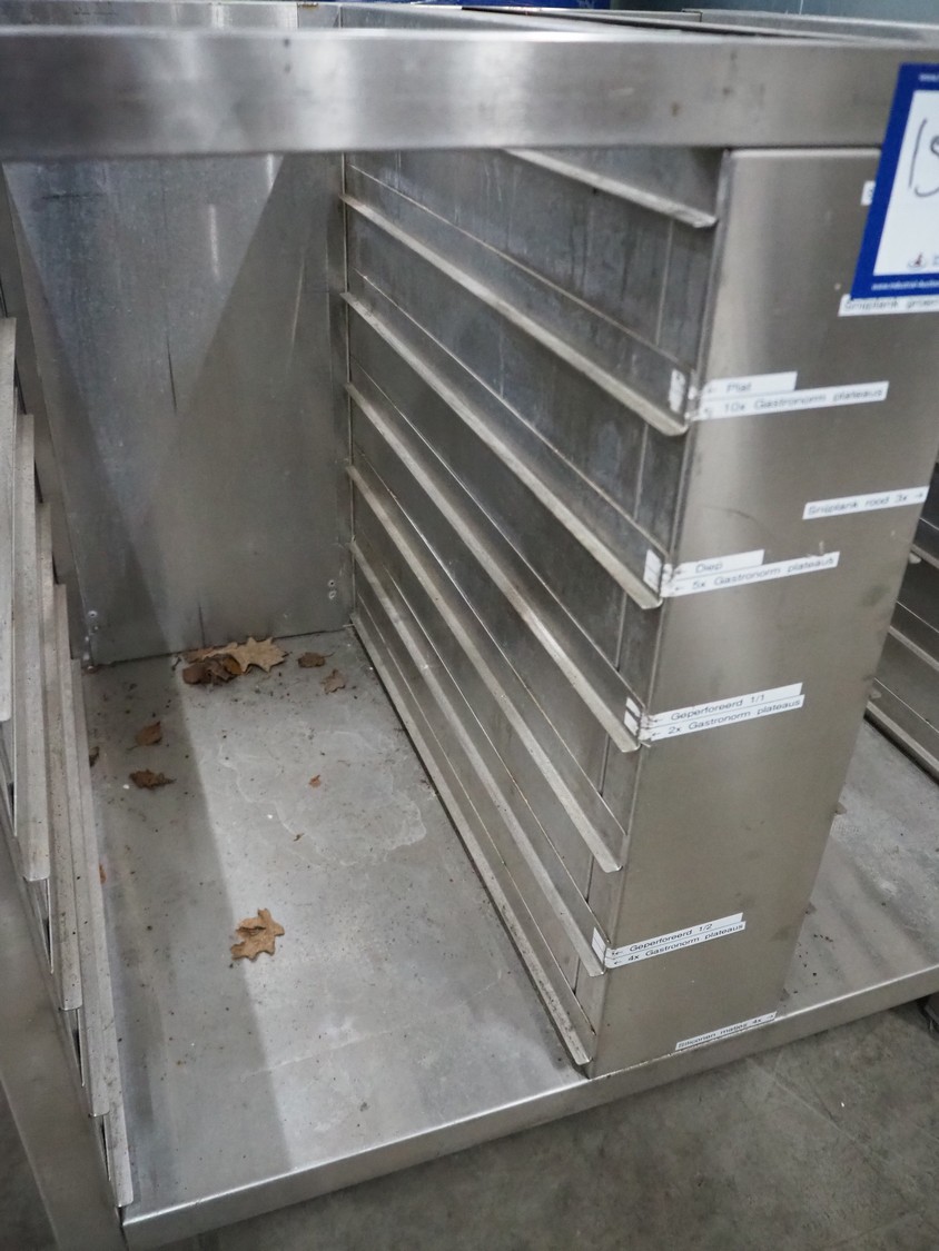 S/s frame for oven, (2x) 7 floors, dimensions floors: (7x) 650 mm x 340 mm, total dimensions: 700 mm x 900 mm x 880 mm.