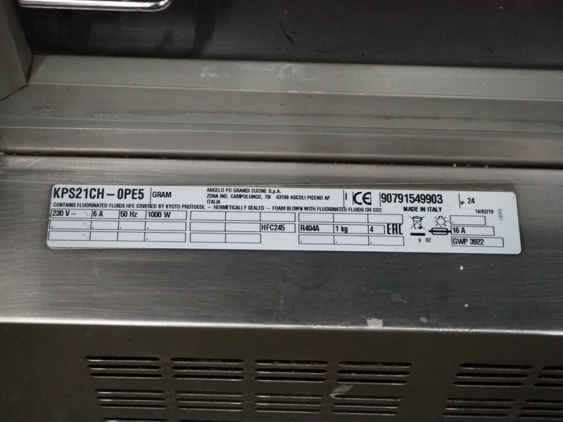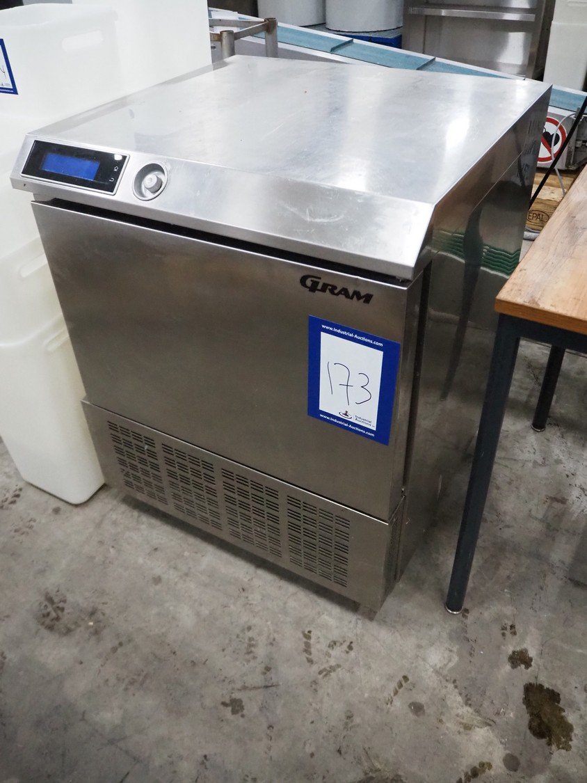 Gram Commercial A/S blast chiller, 5 floors, dimensions floors: (5x) 380 mm x 530 mm, total dimensions: 740 mm x 750 mm x 900 mm.
