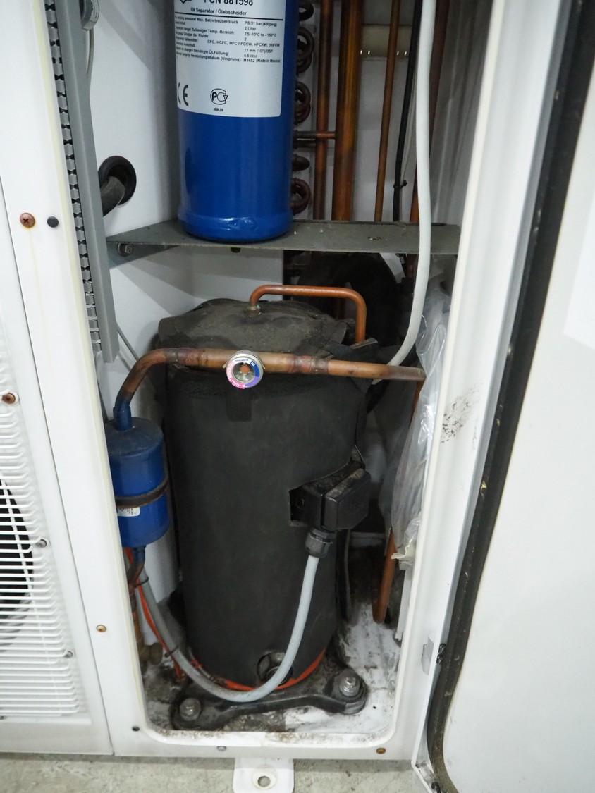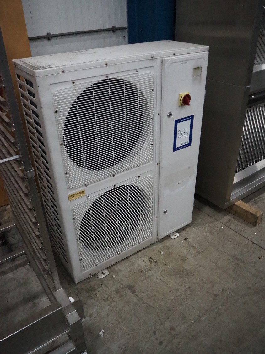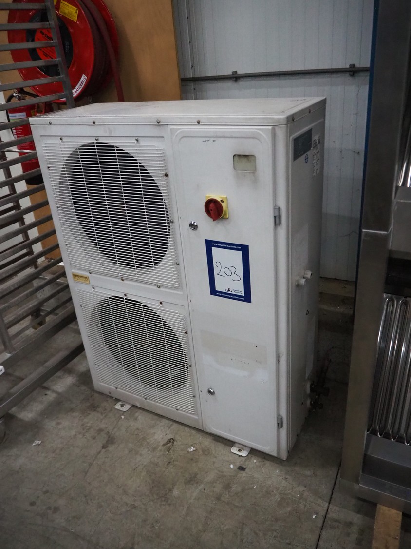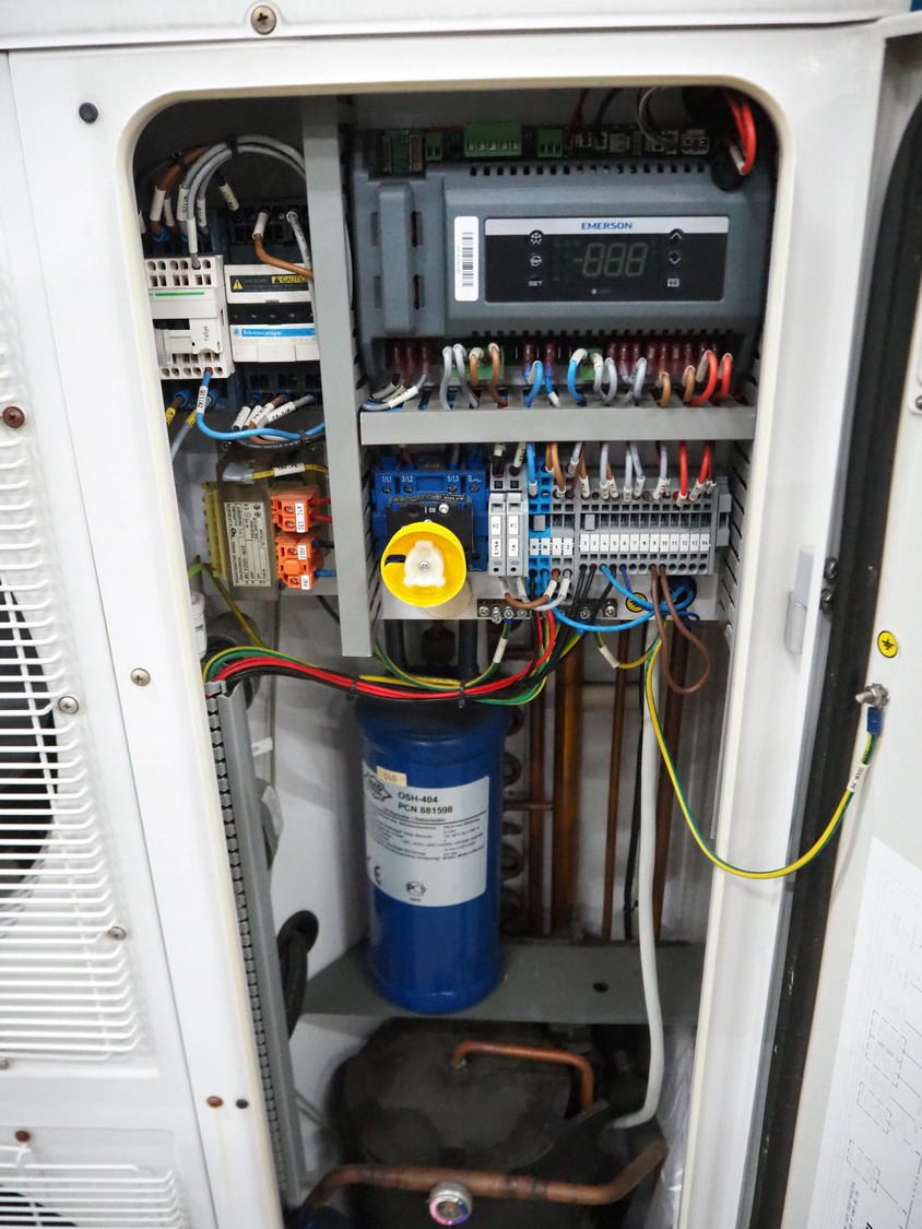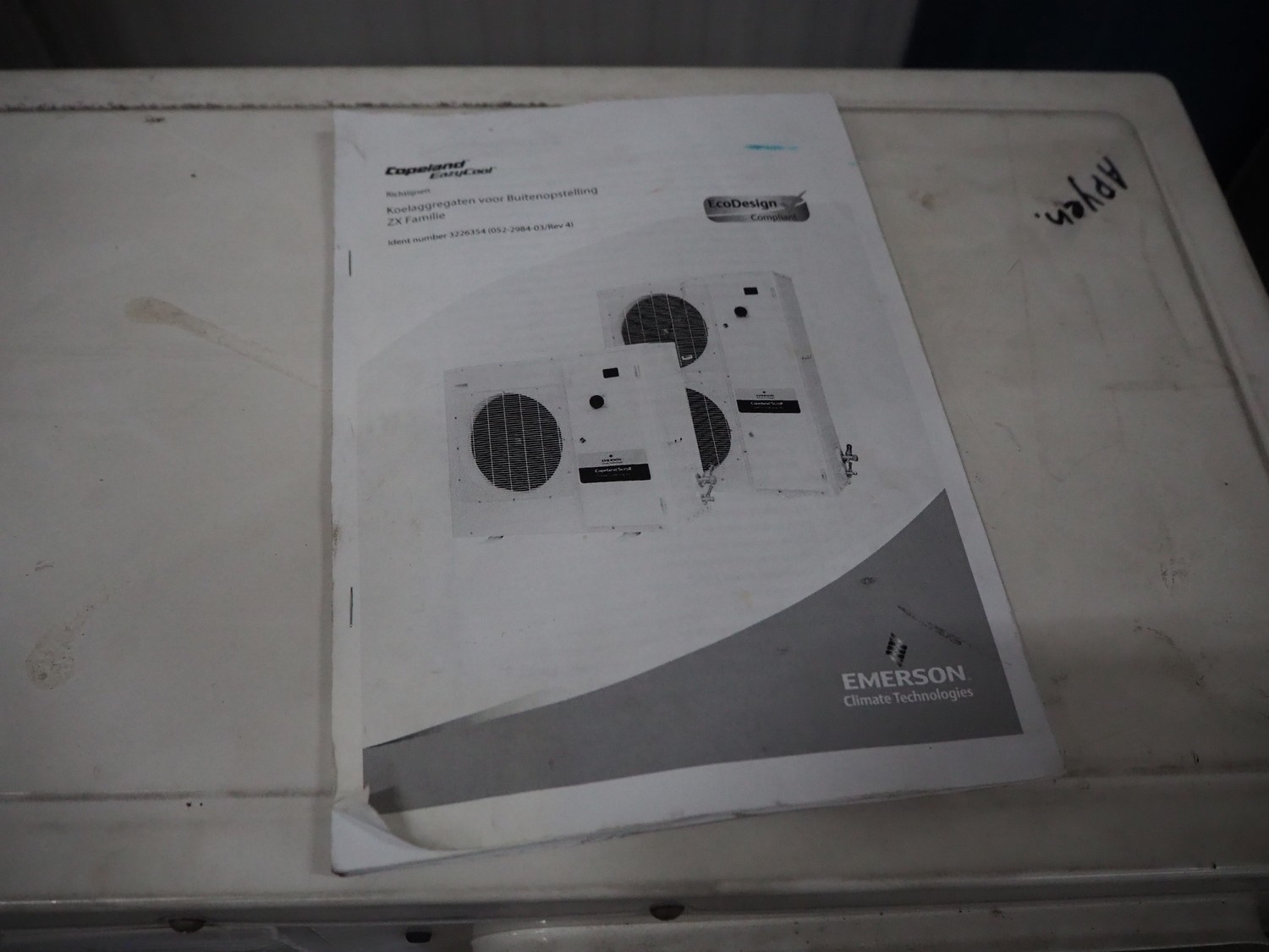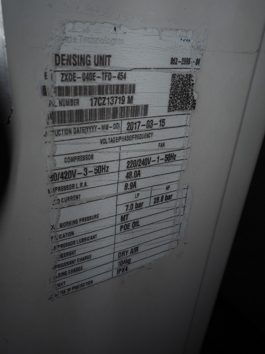 Emerson climate technologies condensing unit, model: ZXDE-040E-TFD-454, serial number: 17CZ13719 M, year of construction: 2017-03-15, 380/420 V, 3 Ph, 50 Hz, 48.0 A, weight: 104 kg, dimensions: 380 mm x 950 mm x 1240 mm.