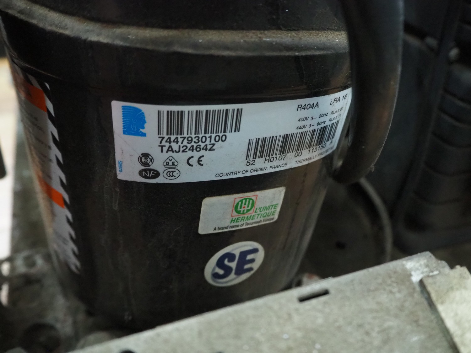 L'unite Hermetique cooling compressor, dimensions: 580 mm x 530 mm x 370 mm.