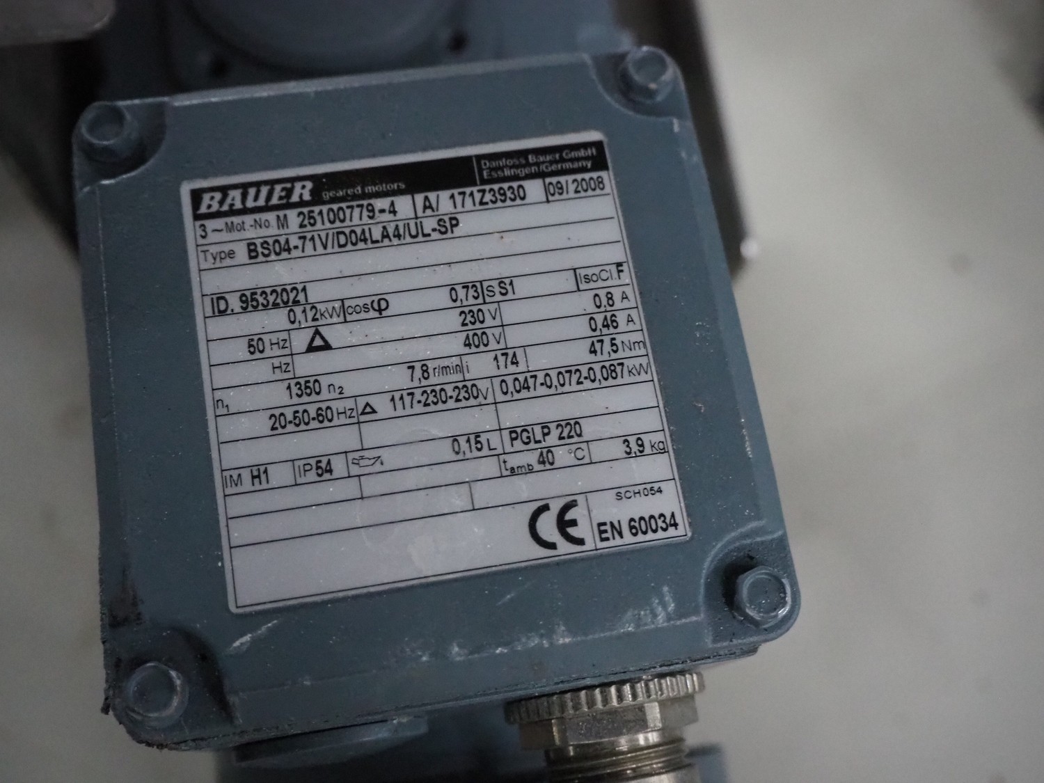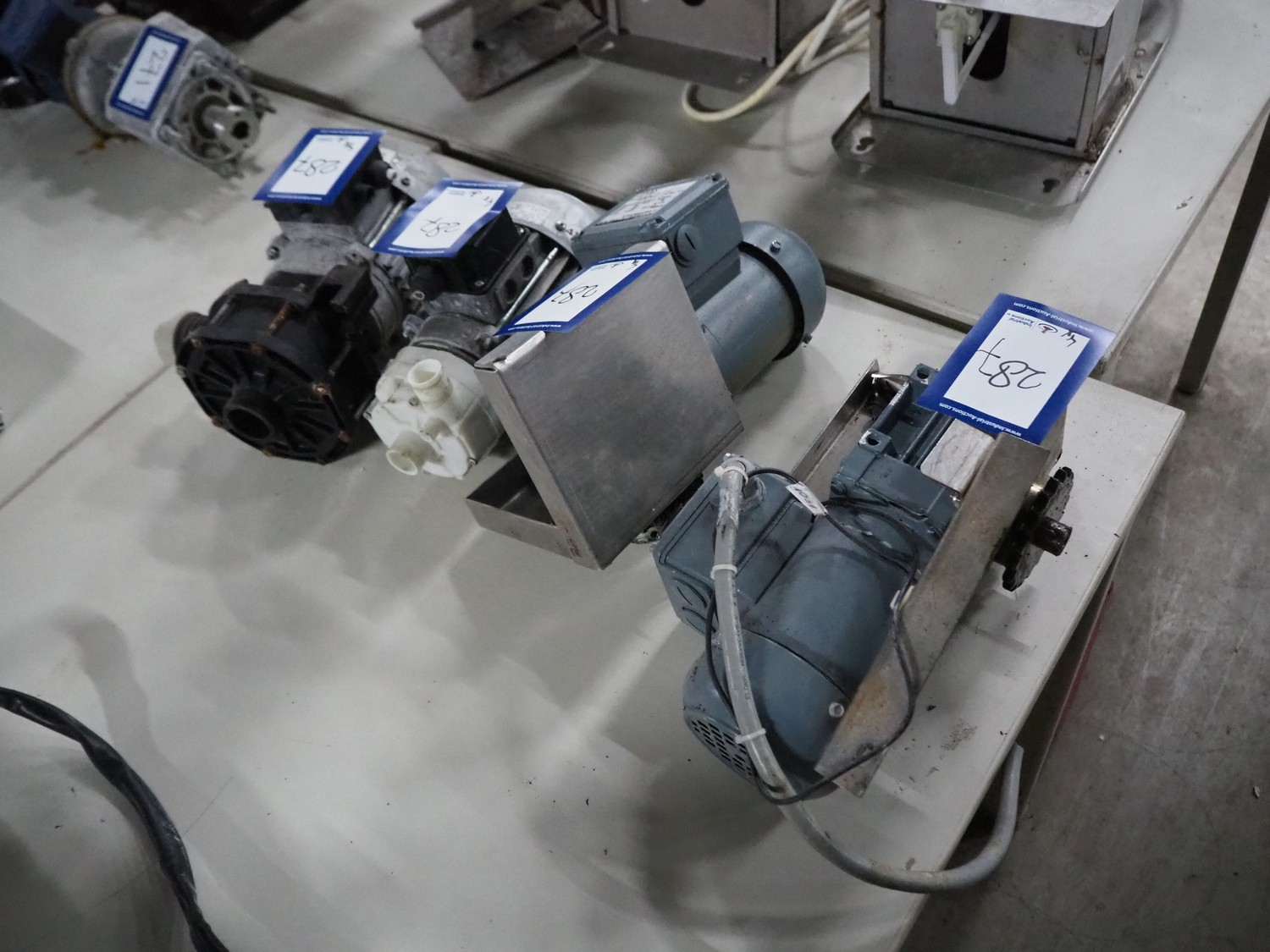 2 Bauer electric motors and 2 Meiko electro pumps, electric motors: type: BS04-71V/D04LA4/UL-SP, number: 25100779-4, 230-400 V, 50 Hz, 0,12 kW, electric pumps type: B242C2700, number: 9621799, 200-240 V, 50 Hz, 0,55 kW.