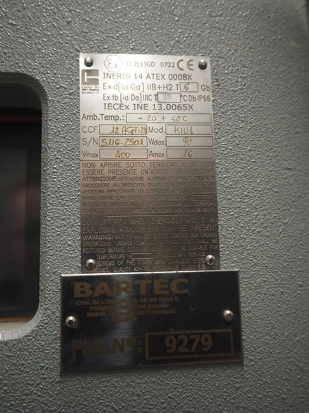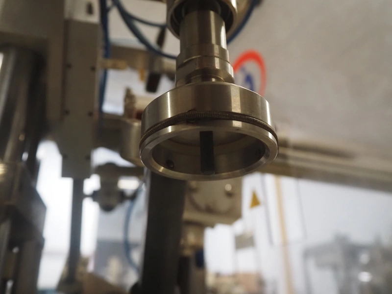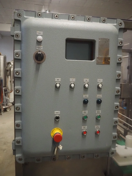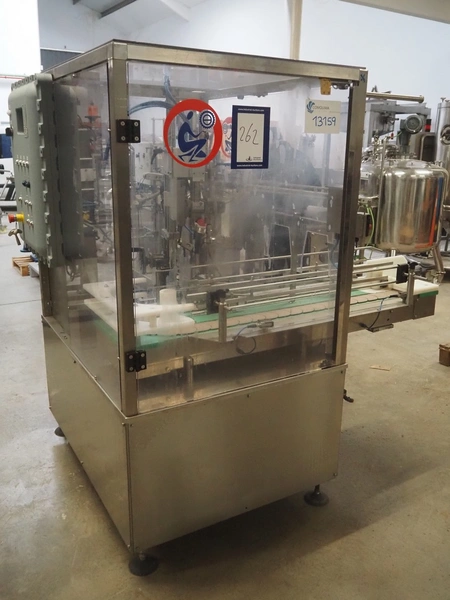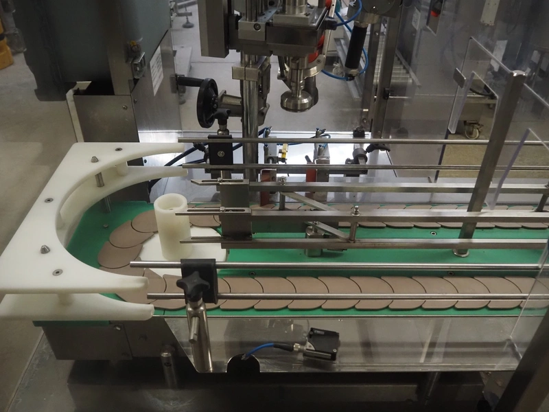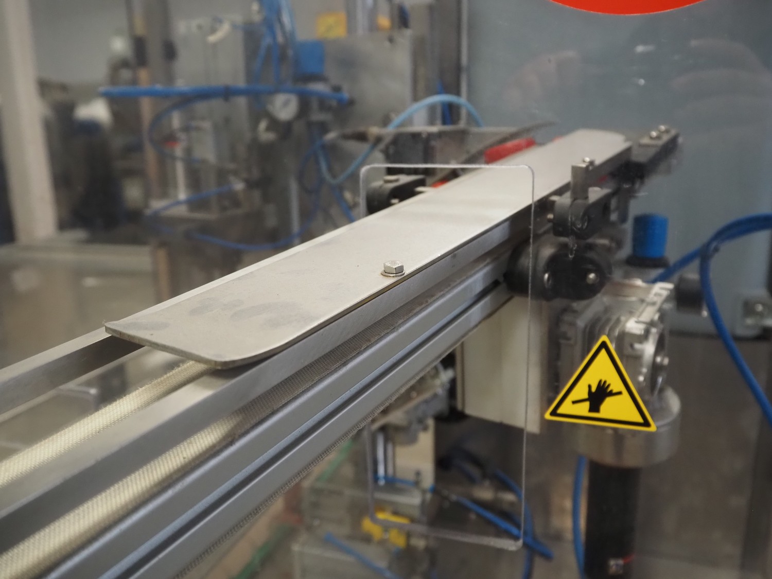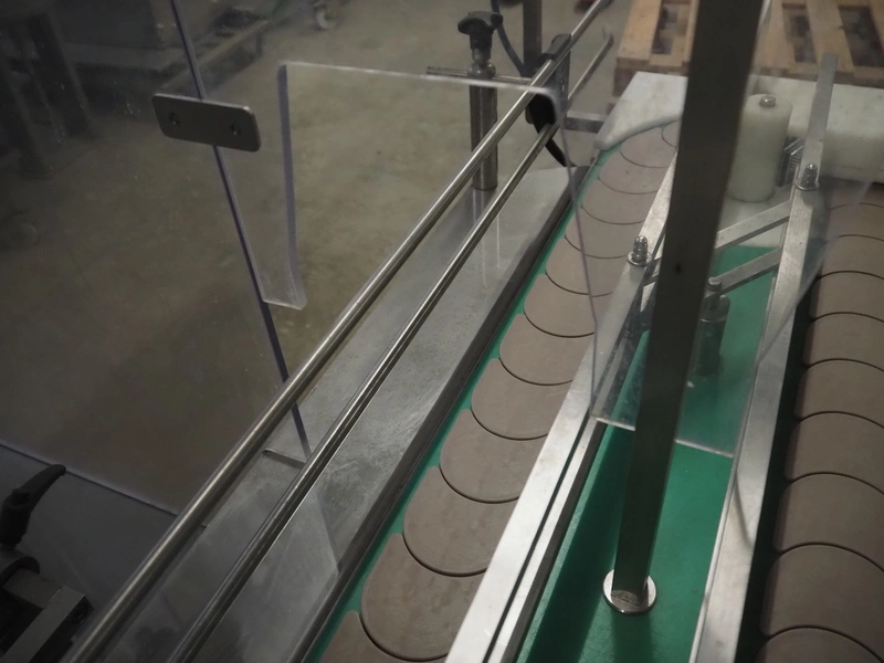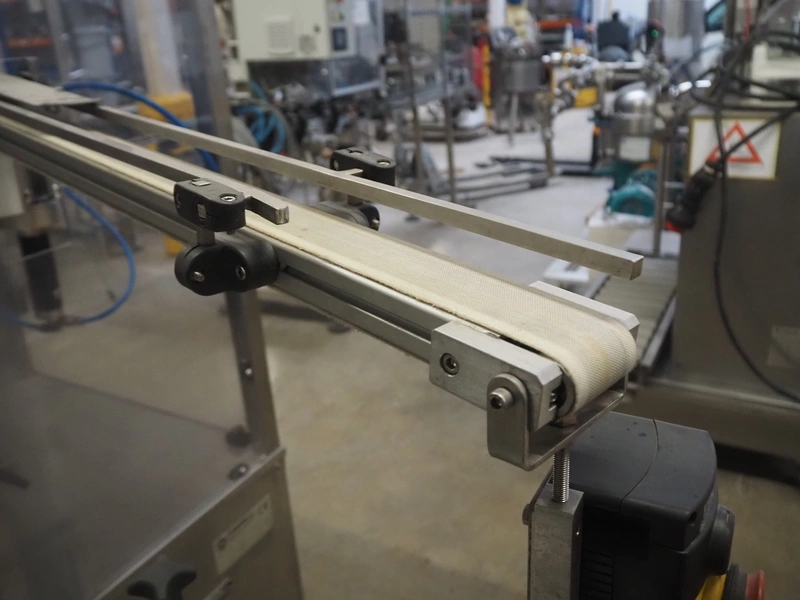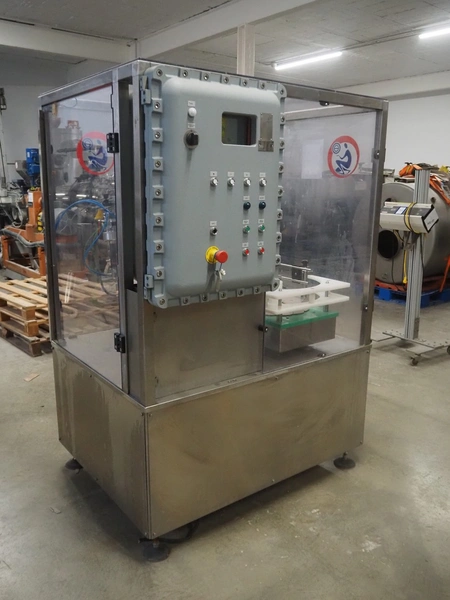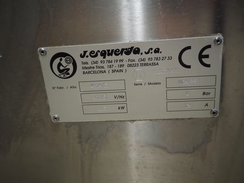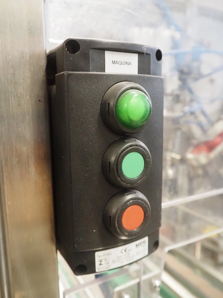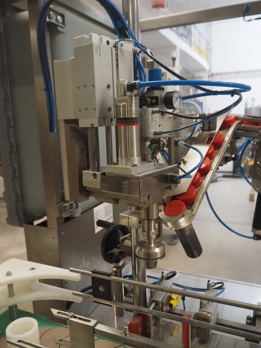 J. Esquerda S.A. capping machine, model: MCA/RP, fabrication number: 4909, year of construction: 2017, 400 V, 50 Hz, 1.9 A, 1.05 kW, diameter caps: 50 mm, plastic belt, belt width: 80 mm, total dimensions: 1700 mm x 1250 mm x 1800 mm.