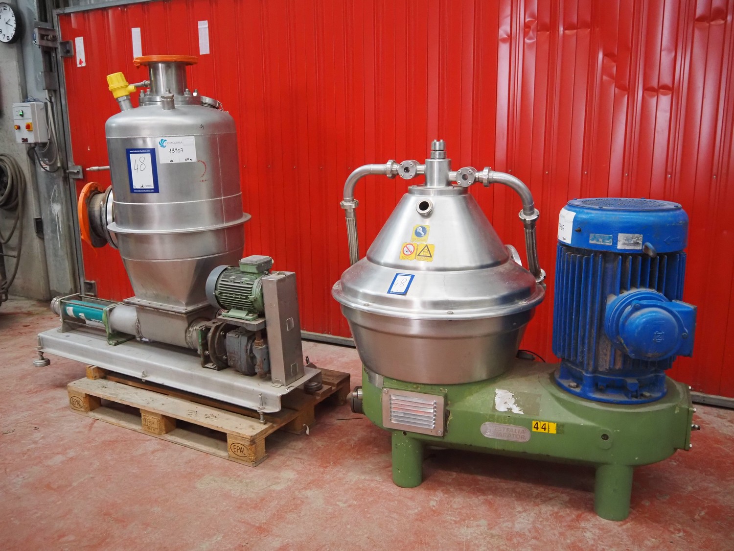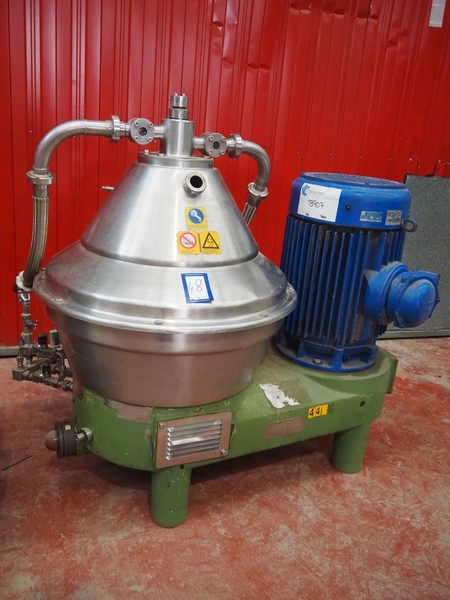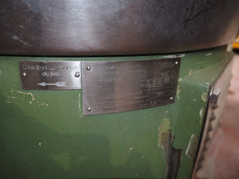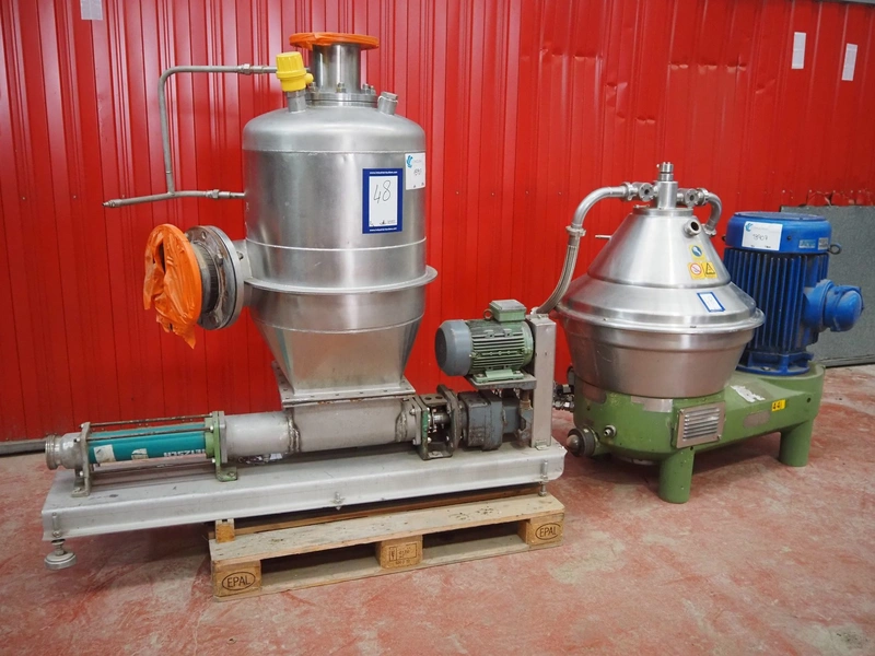 Westfalia centrifuge separator, model: SC 35-36-177, number: 1713 098, 1.1/1.4 kg/dm³, year of construction: 1995, dimensions: 1550 mm x 1200 mm x 1400 mm, Netzch progressing cavity pump, dimensions: 1800 mm x 700 mm x 1600 mm.