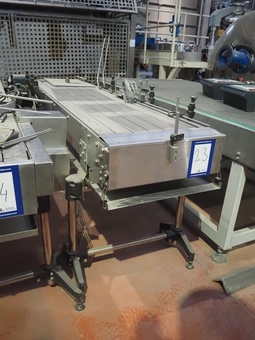 Transport belt, s/s frame, plastic belt, belt width: (7x) 80 mm, total dimensions: 2900 mm x 800 mm x 1150 mm.€ 750,000 bids09/04/2026 15:20 -