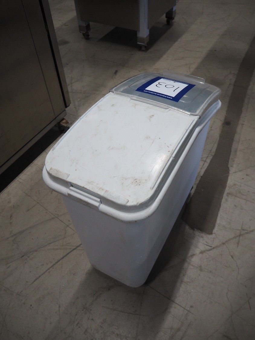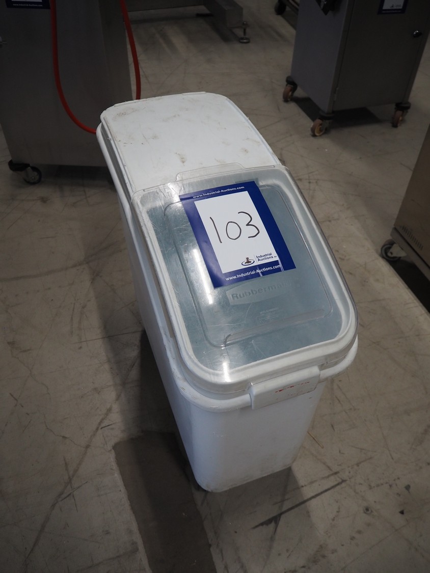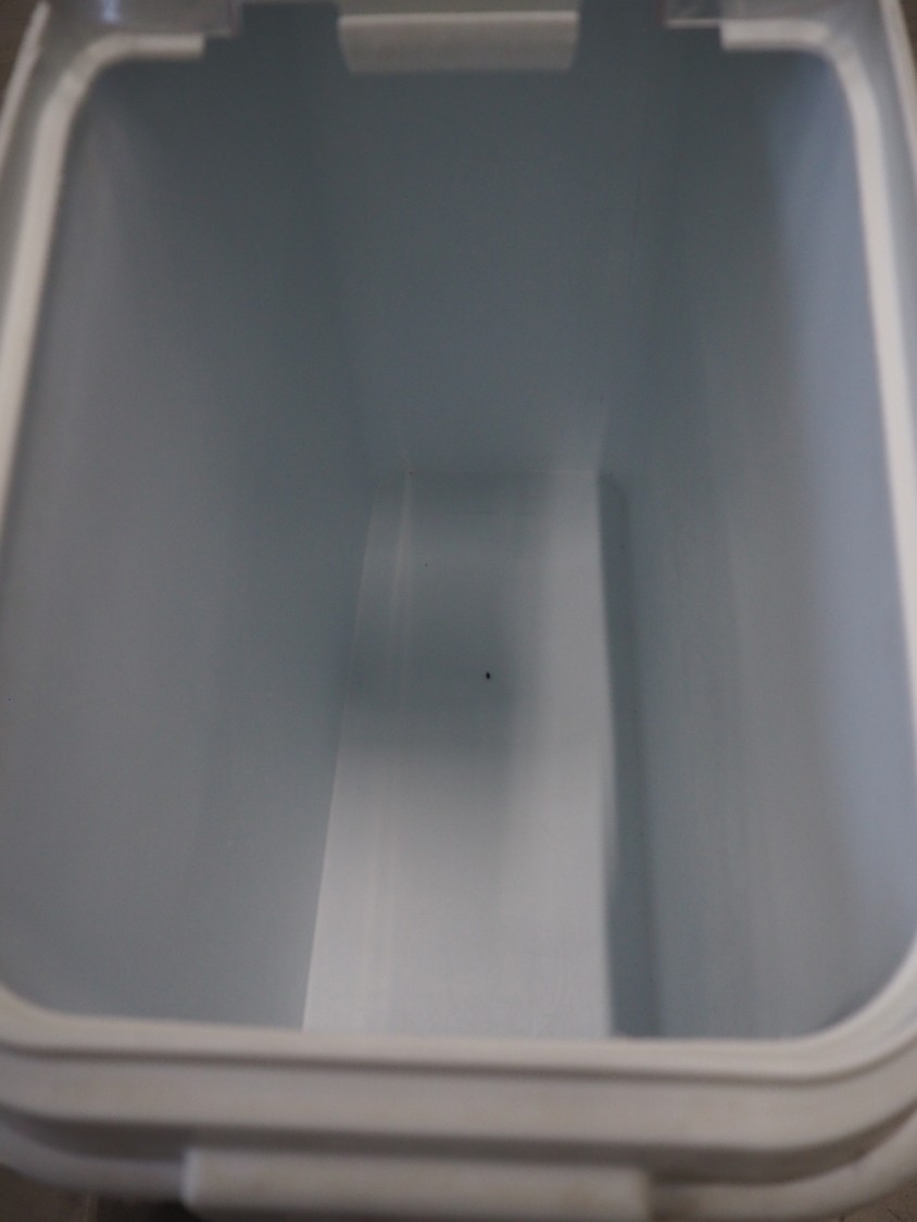 Rubbermaid plastic tub, dimensions: 750 mm x 320 mm x 730 mm.