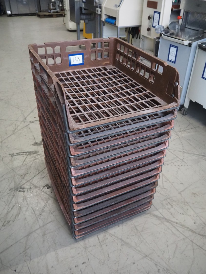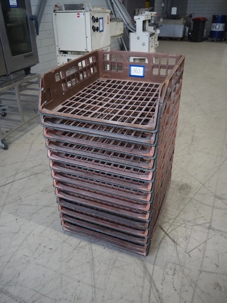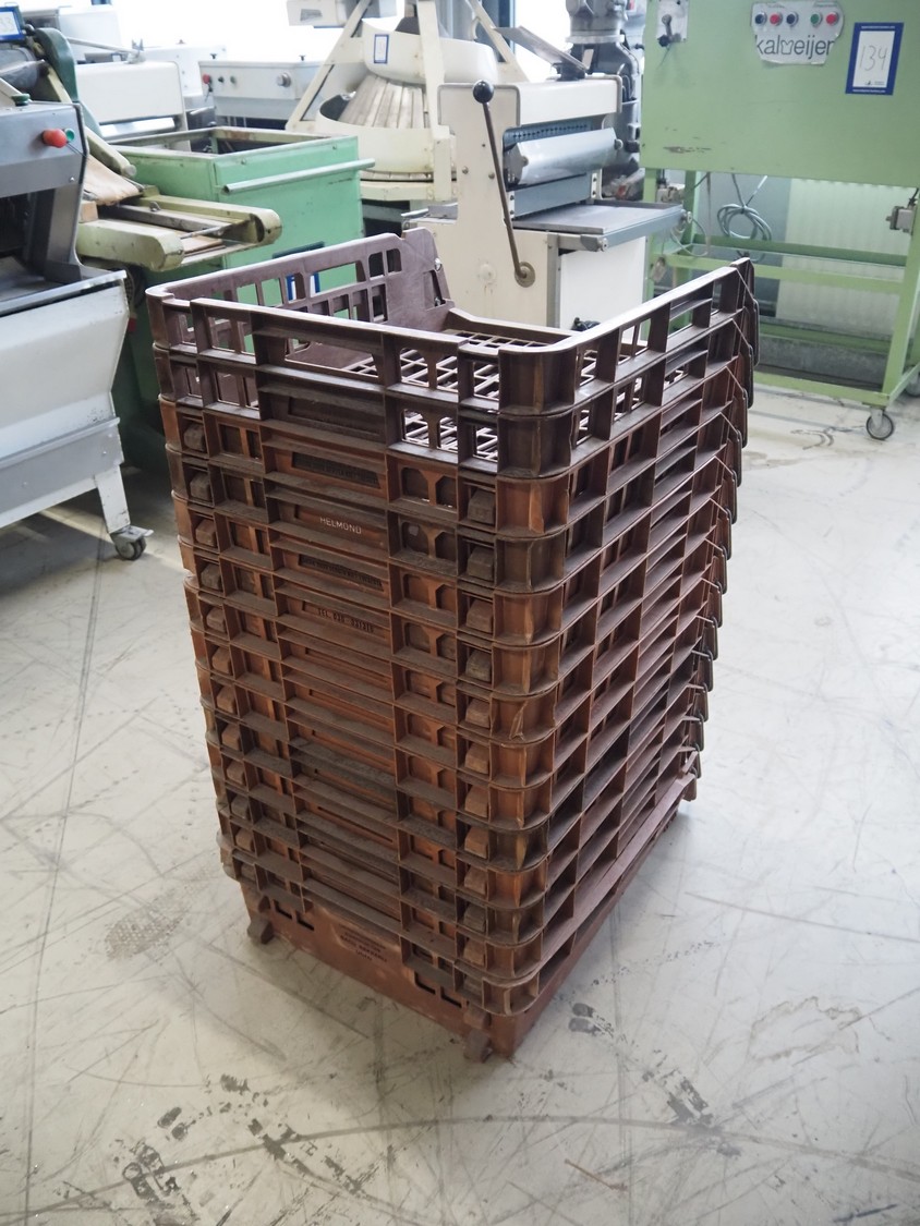 14 plastic bread trays, dimensions: (14x) 695 mm x 575 mm x 170 mm.
