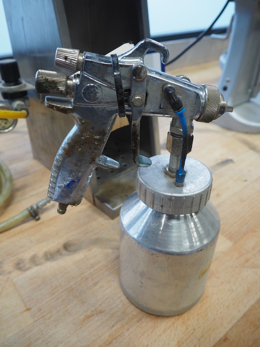 Spraying pistol, dimensions: 300 mm x 250 mm x 400 mm.