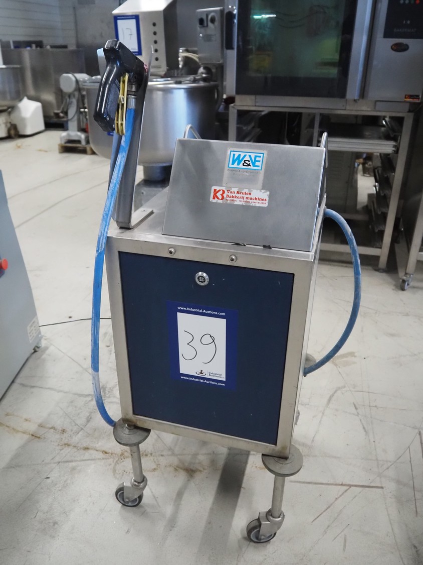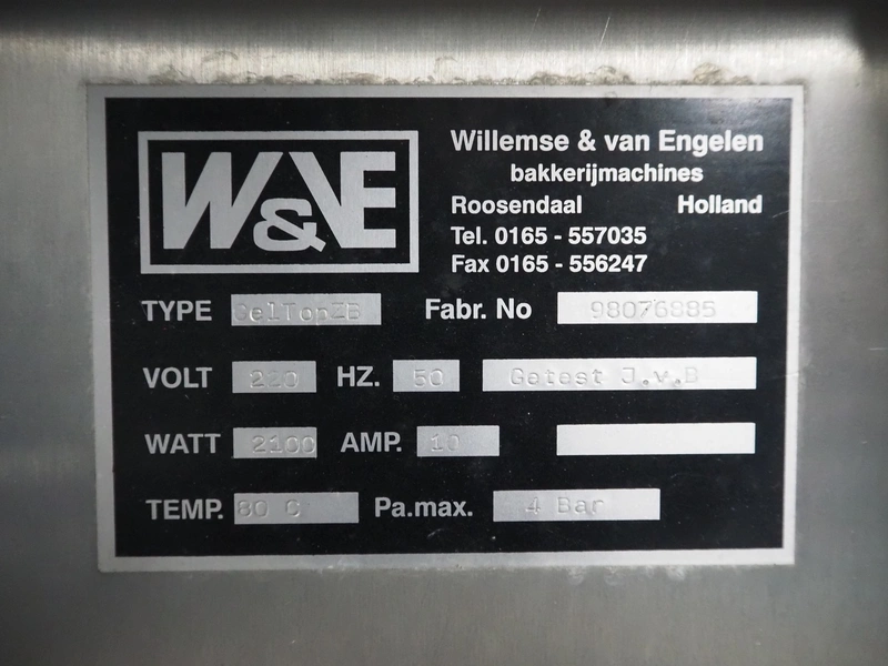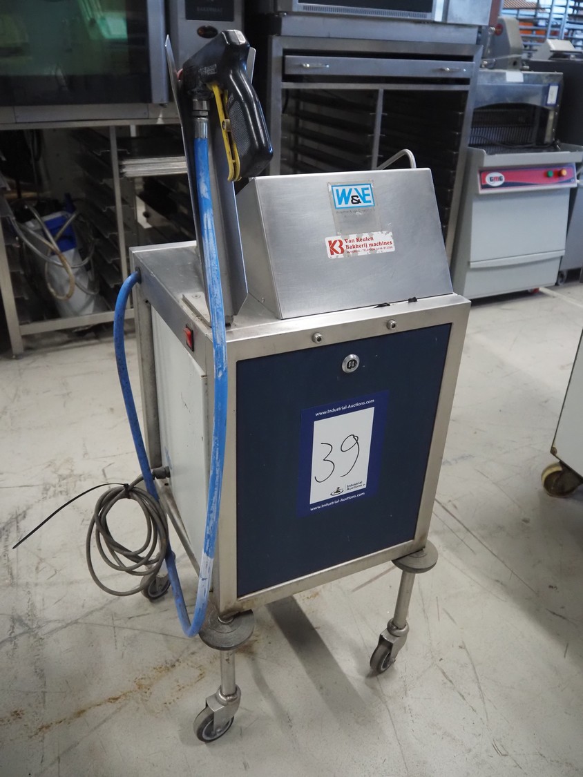 W&E mobile jelly machine, type: GelTopZB, factory number: 98076885, 220 V, 50 Hz, 10 A, 2100 W, 4 bar, dimensions: 460 mm x 480 mm x 1130 mm.