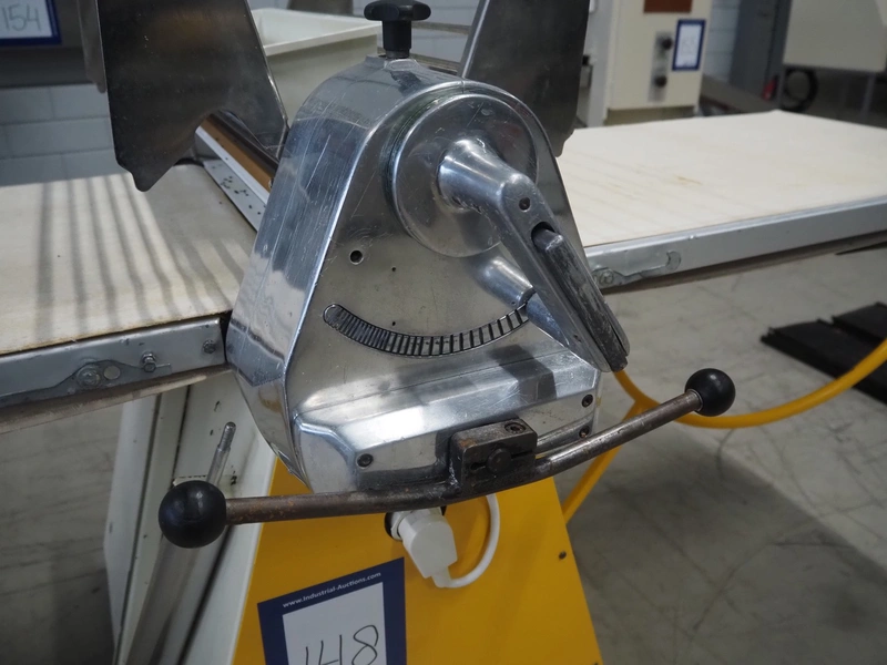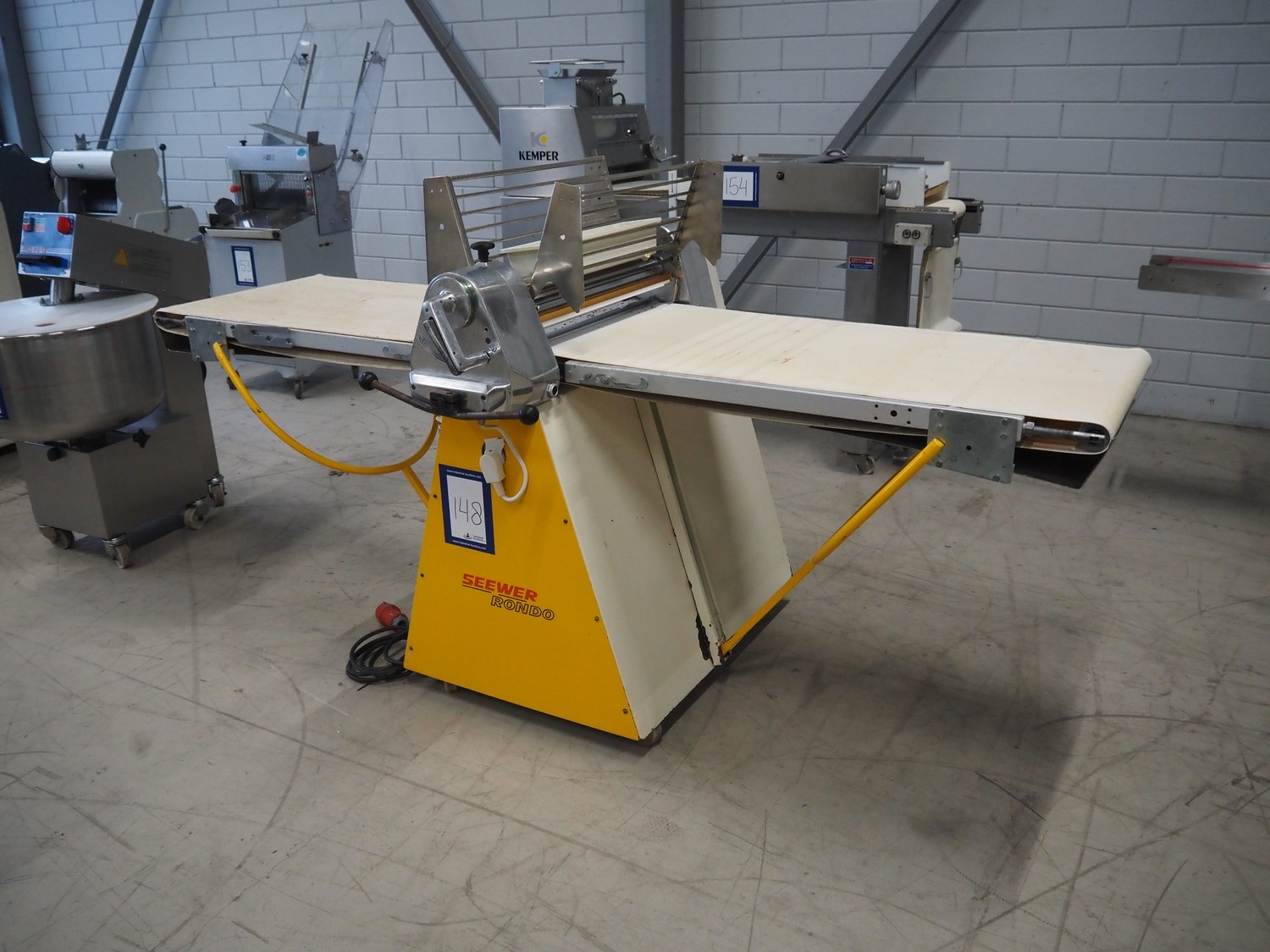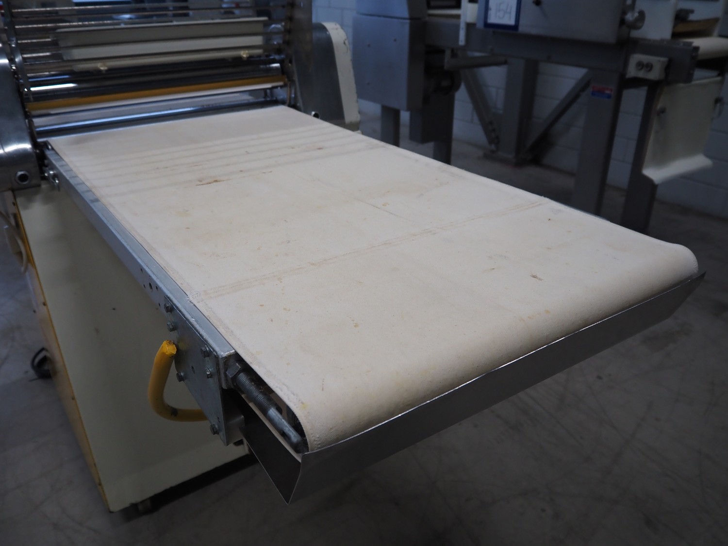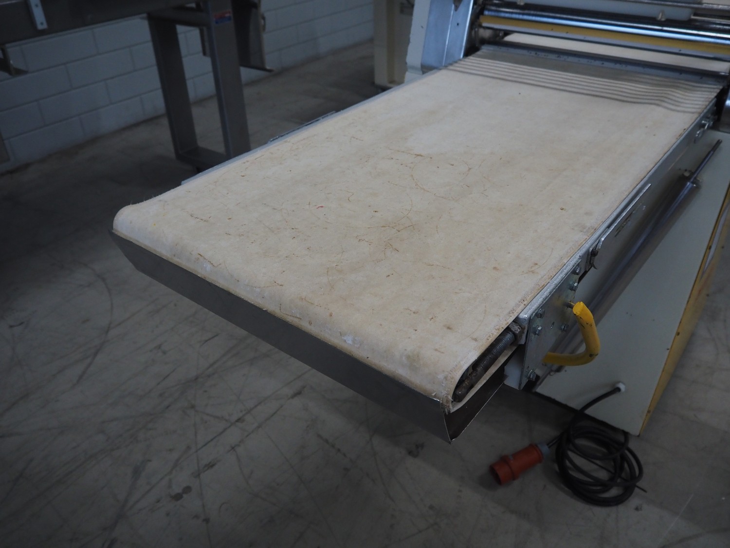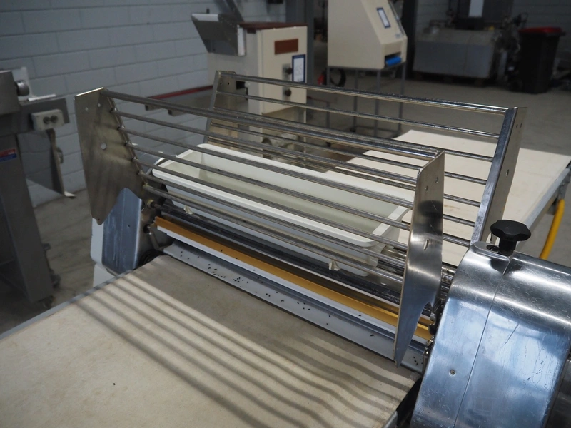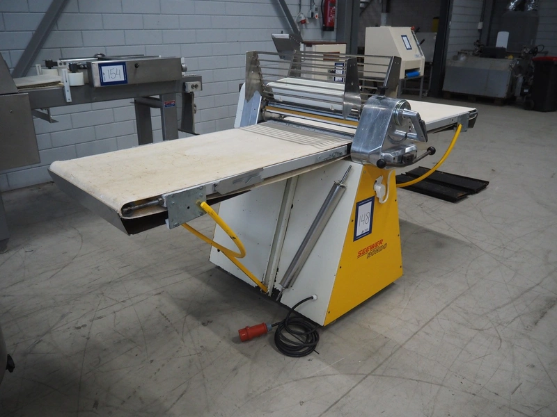 Seewer rondo mobile dough sheeter, cloth belt, belt width: 590 mm, total dimensions: 2450 mm x 1100 mm x 1270 mm.