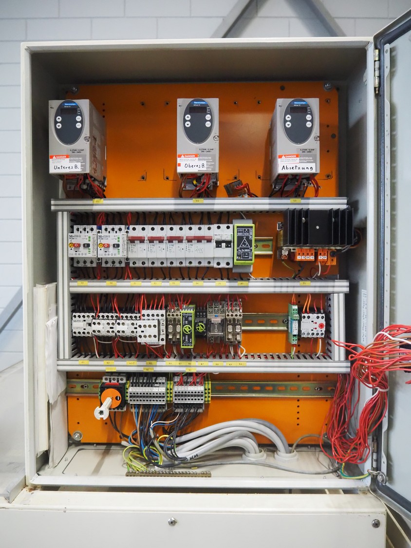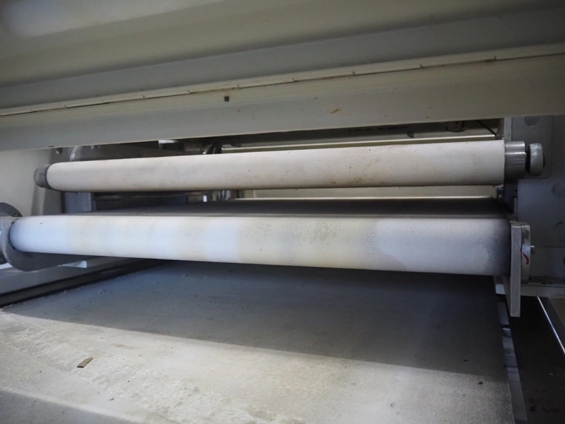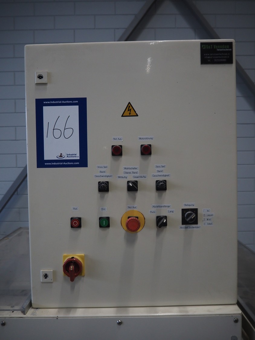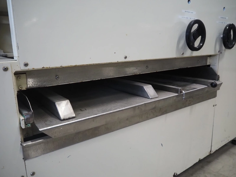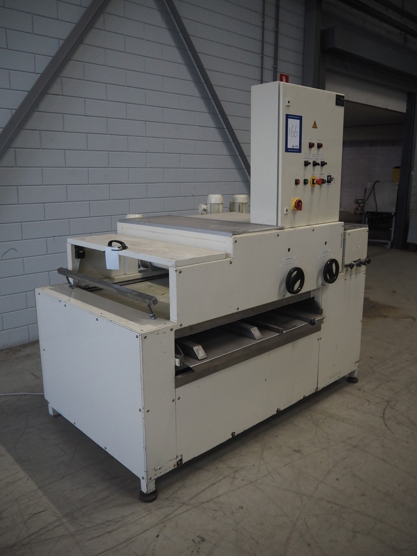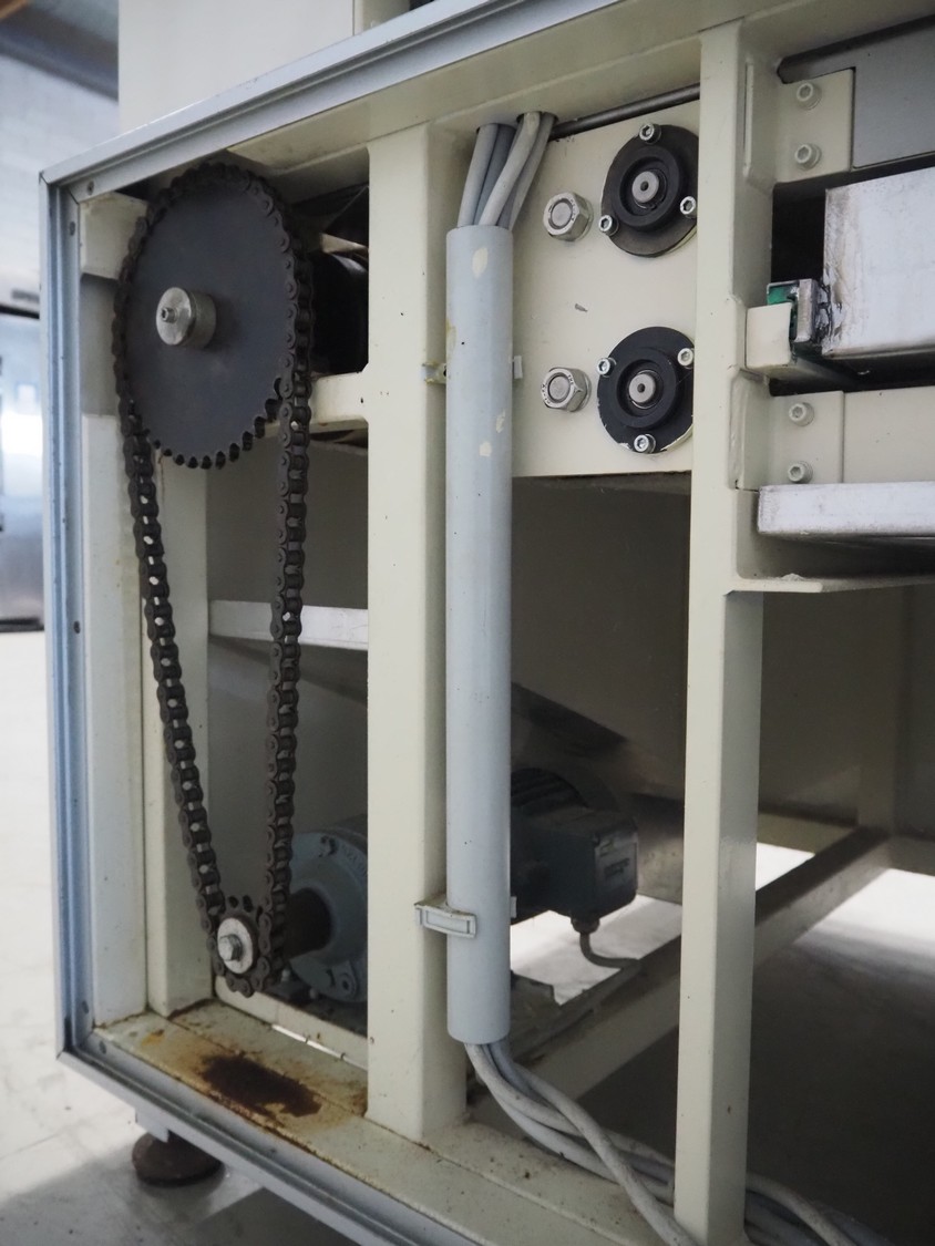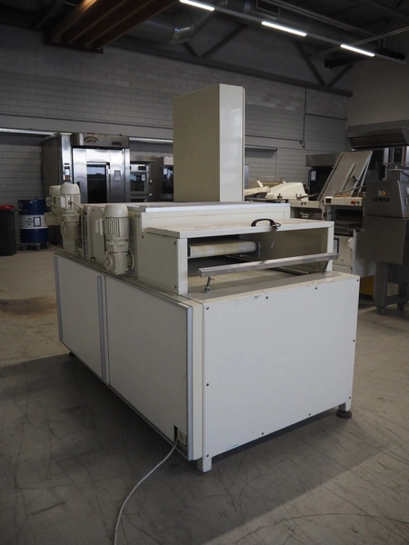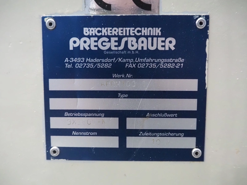 Bäckereitechnik Pregesbauer pressure belt for small bread, number: APRM100.1, 380 V, 3 Ph, 10 A, cloth belt, belt width: (3x) 795 mm, total dimensions: 1900 mm x 1250 mm x 1930 mm.