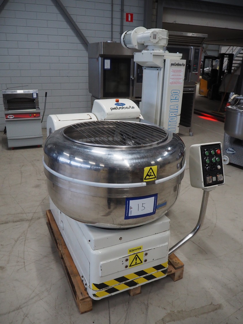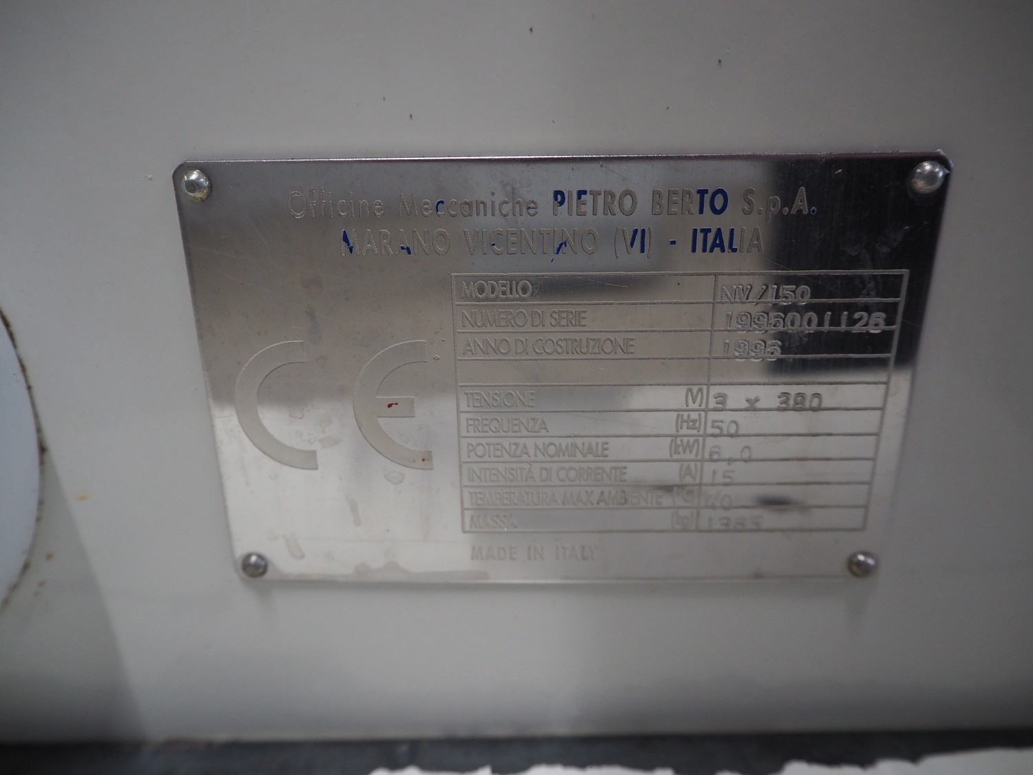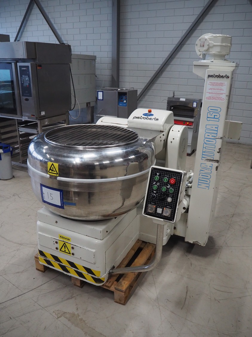 Pietro Berto S.p.A. mixer, model: NV/150, serial number: 1996001126, year of construction: 1996, 380 V, 3 Ph, 50 Hz, 15 A, 6 kW, weight: 1385 kg, volume: 150 liter, dimensions: 1500 mm x 1400 mm x 1850 mm.