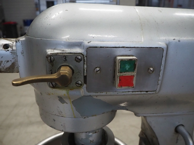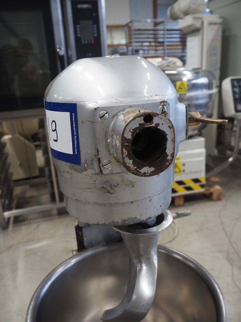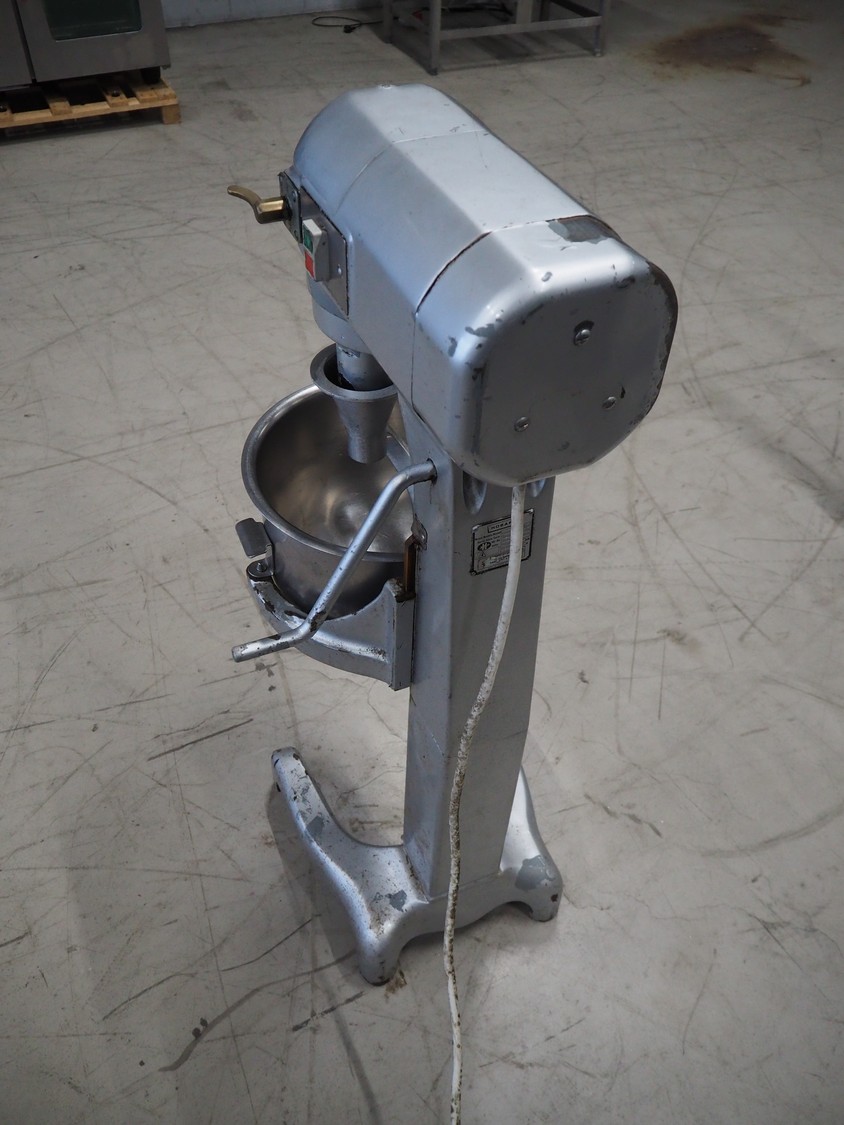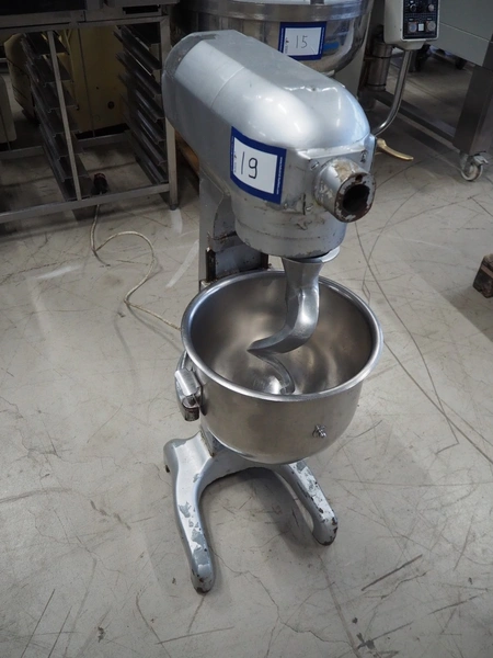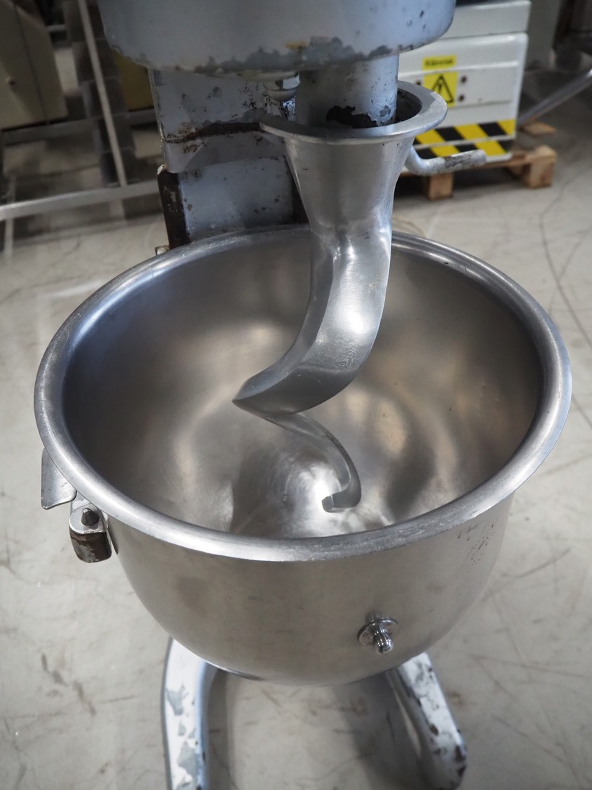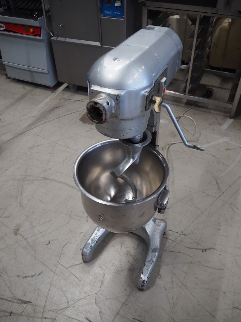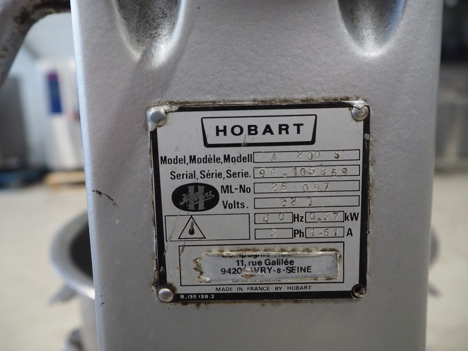 Hobart mixer, model: A 200 S, serial number: 94.105869, 220 V, 3 Ph, 50 Hz, 1.61 A, 0.37 kW, dimensions: 520 mm x 450 mm x 1150 mm. Including flat beater.