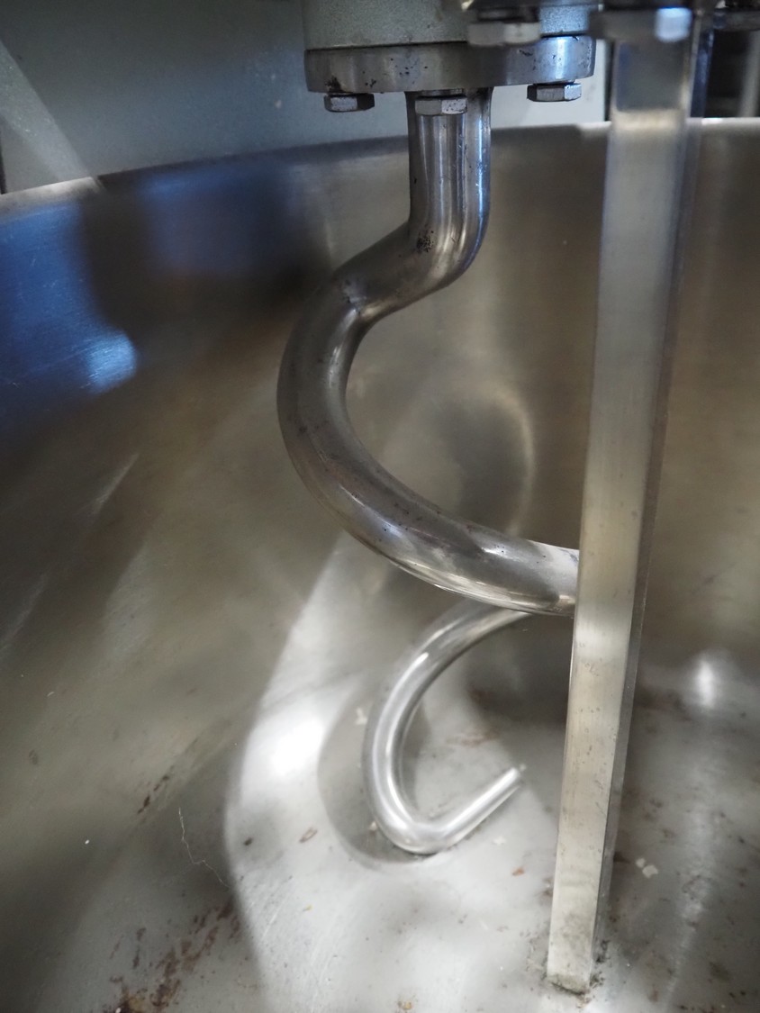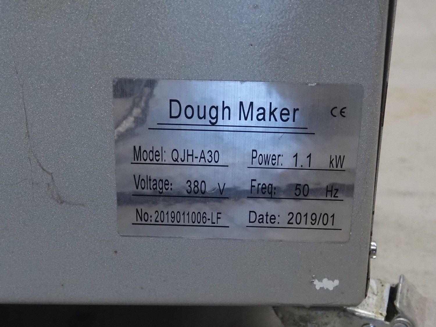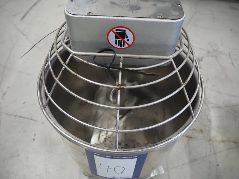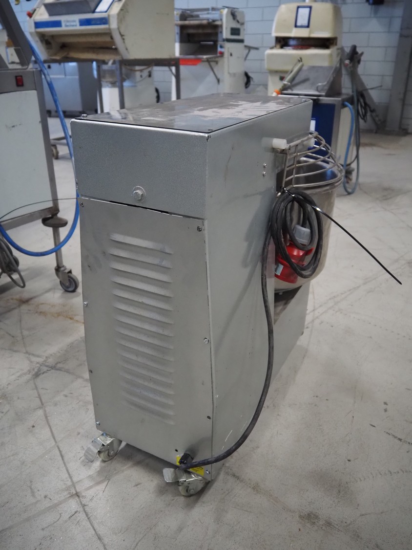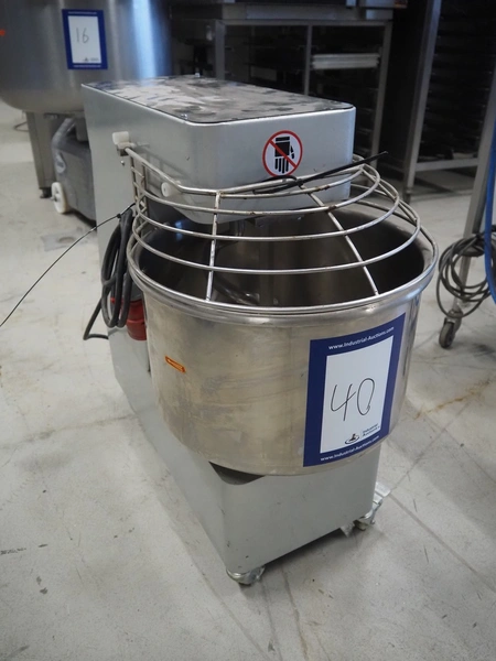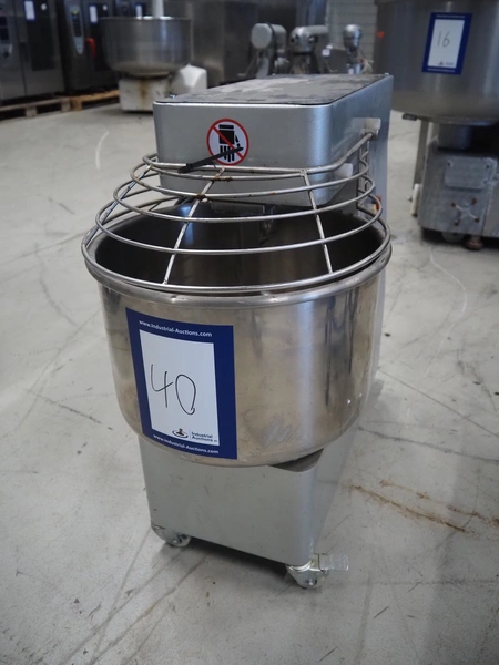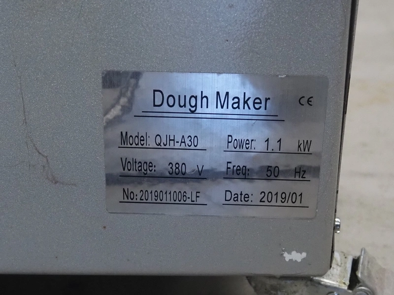 Mobile spiral mixer, model: QJH-A30, number: 2019011006-LF, year of construction: 01/2019, 380 V, 50 Hz, 1.1 kW, volume: 30 liter, dimensions: 430 mm x 760 mm x 750 mm.