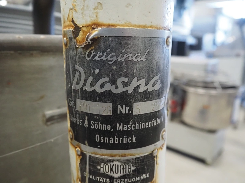 Diosna mobile mixer, type: S70 2G, number: 5 250, steel bowl, inside dimensions: Ø 715 mm x 350 mm, total dimensions: 840 mm x 900 mm x 1200 mm.