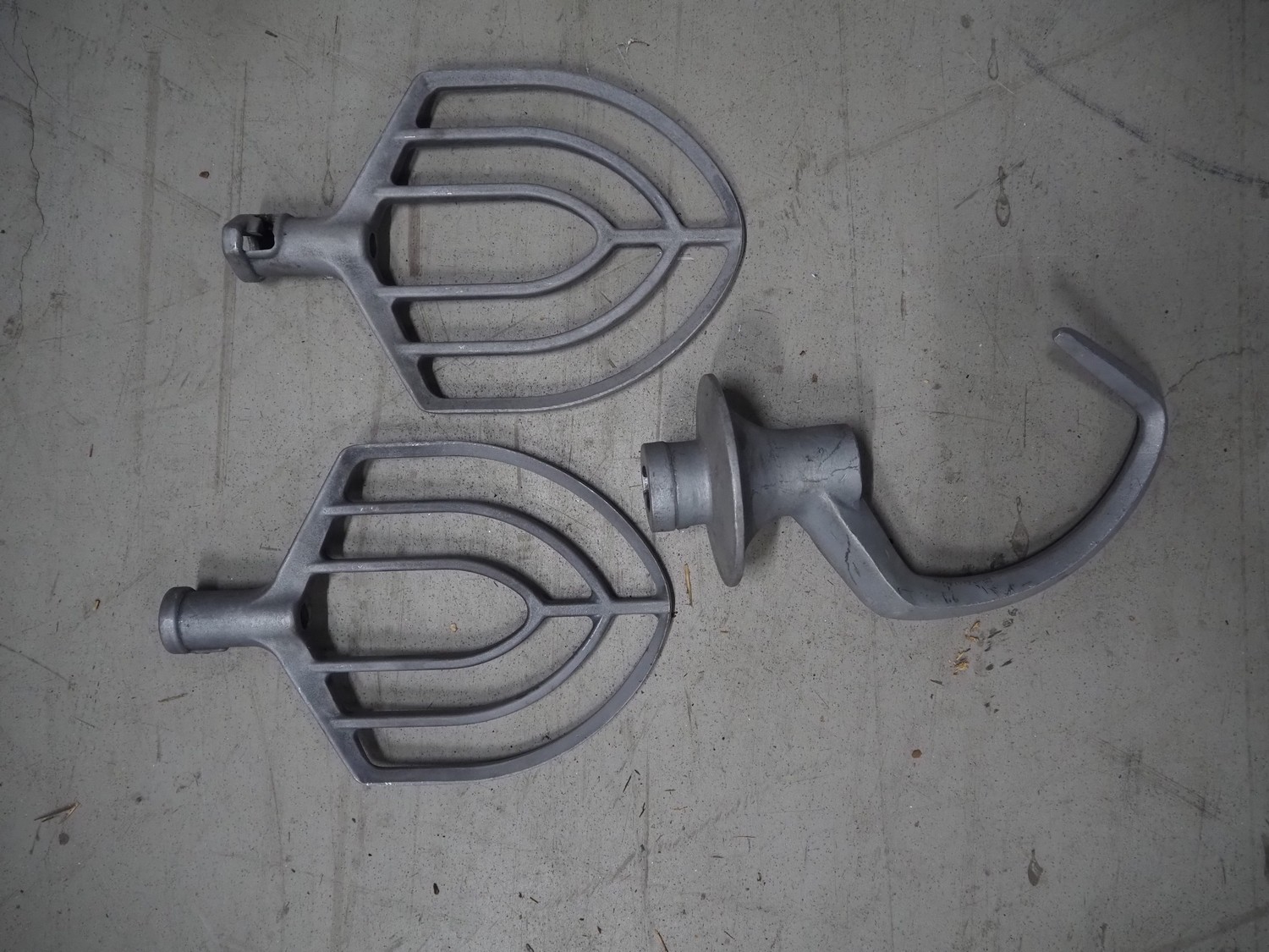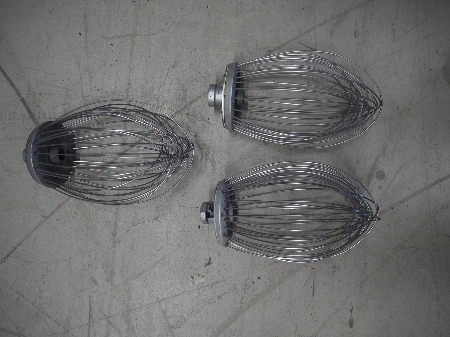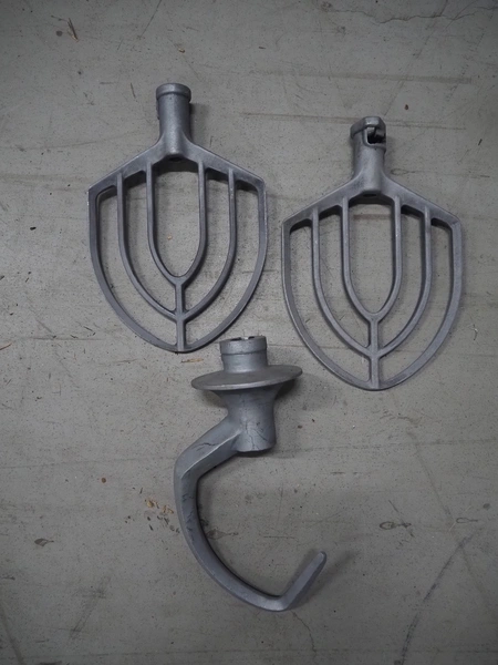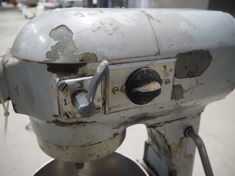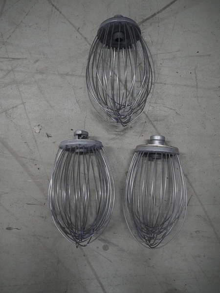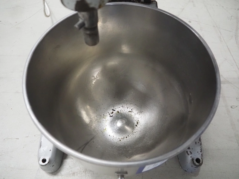 Hobart mixer, model: A200, serial number: 720433, 380 V, 3 Ph, 50 Hz, 0.98 A, inside dimensions: Ø 320 mm x 300 mm, total dimensions: 450 mm x 480 mm x 750 mm. Including 3 whisks, 2 flat beaters and 1 hook.