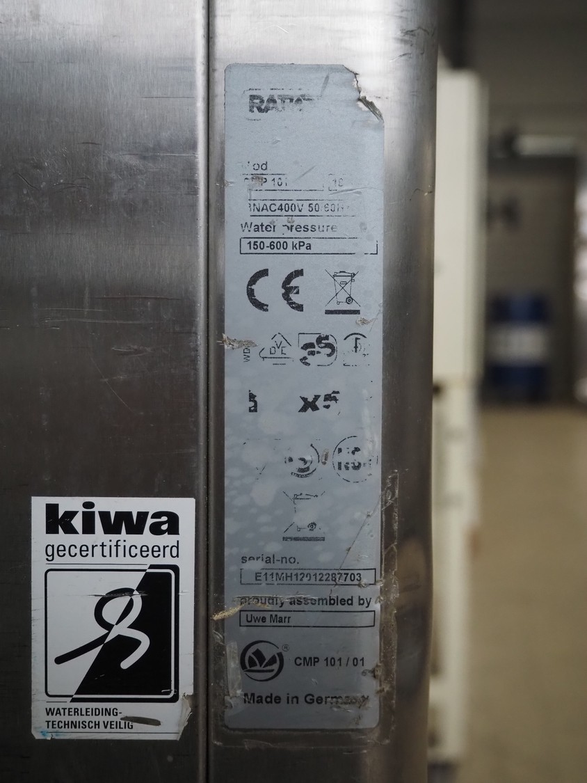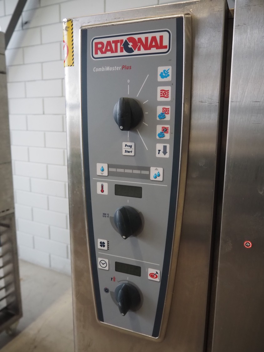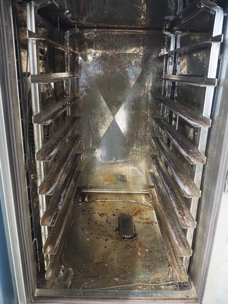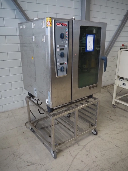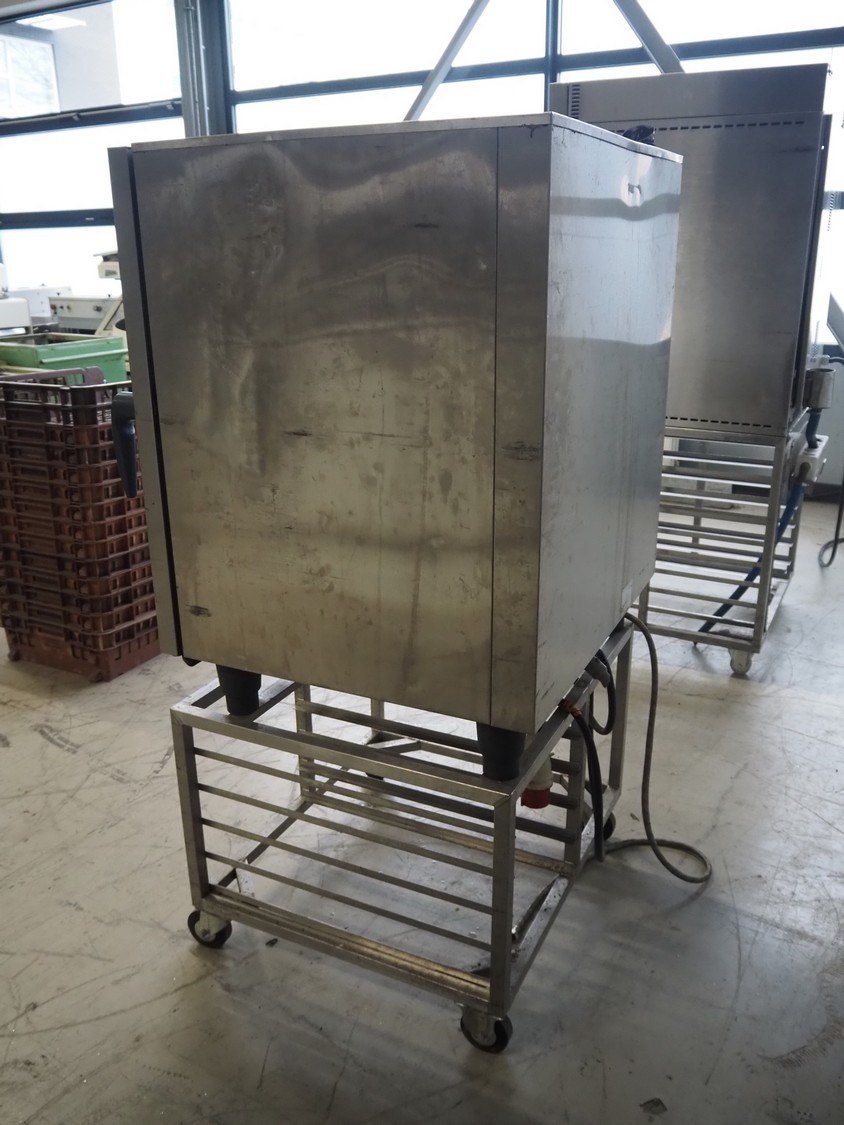 Rational mobile combi steamer, serial number: E11MH12012287703, 8 floors, floor dimensions: (8x) 600 mm x 400 mm, total dimensions: 850 mm x 850 mm x 1700 mm.