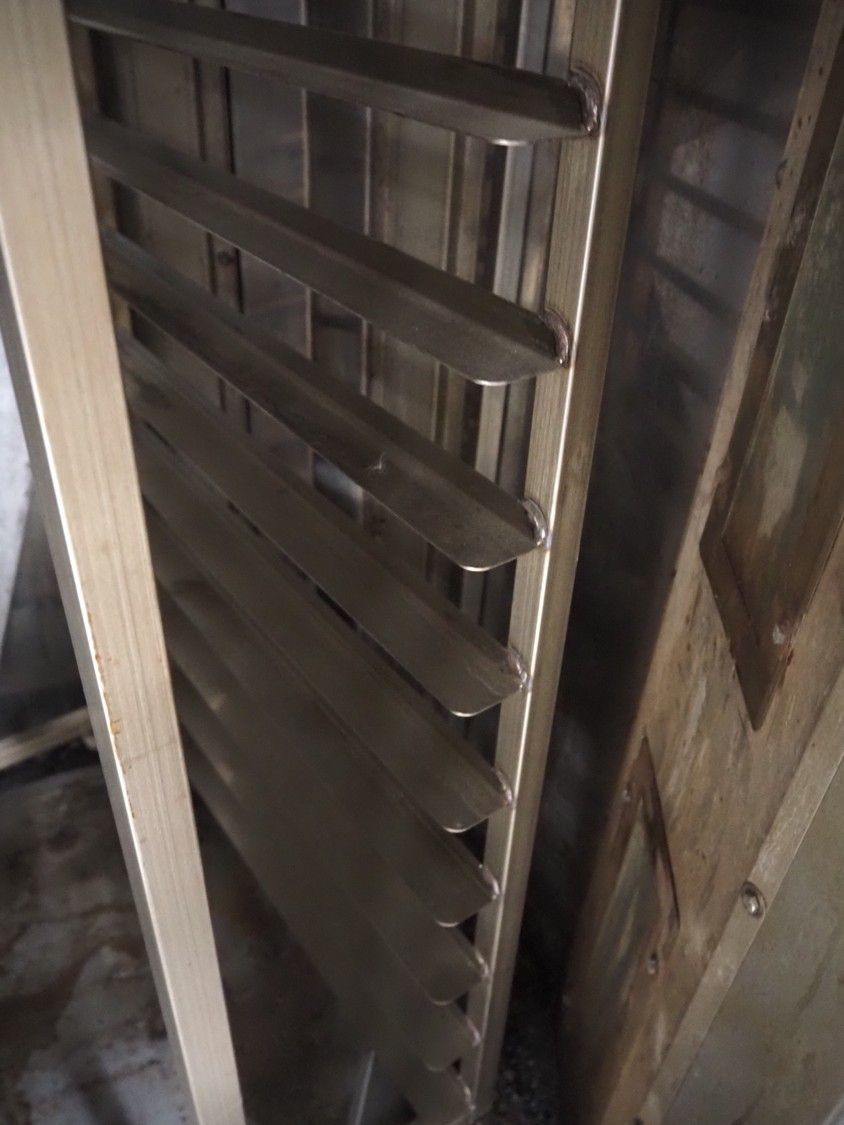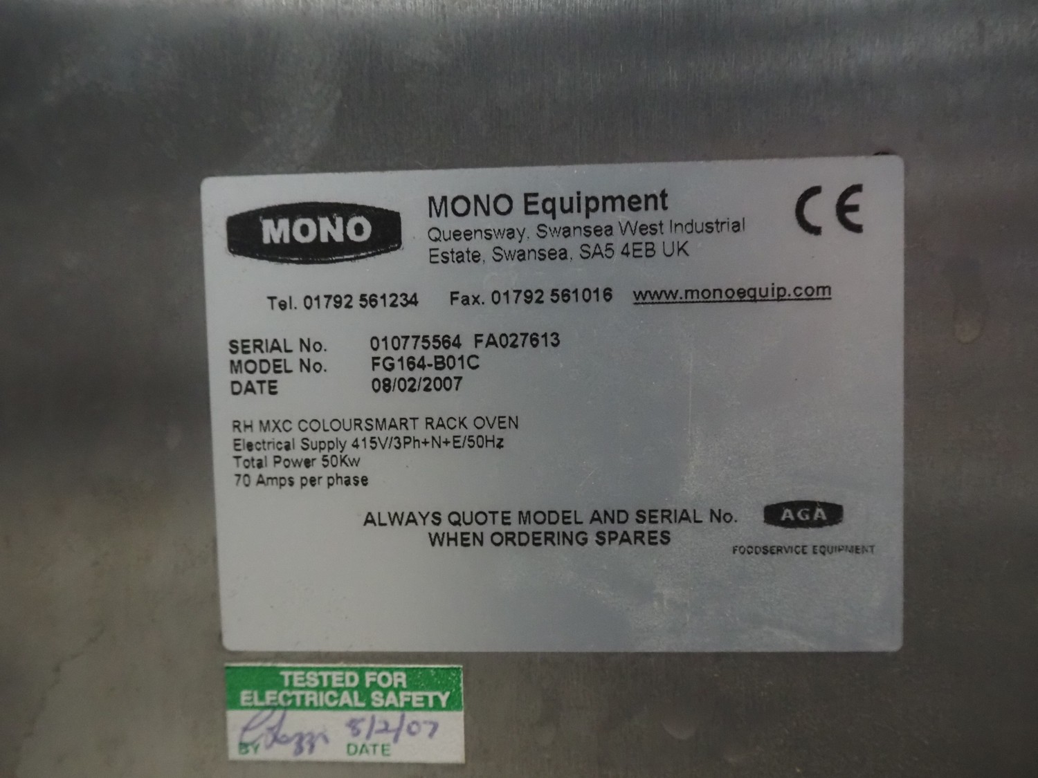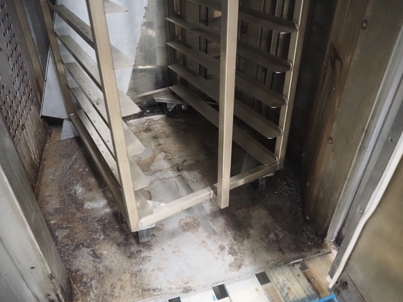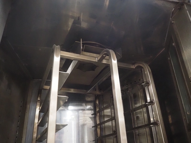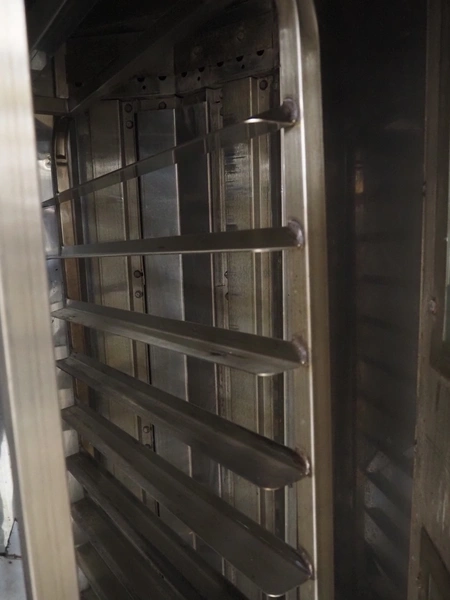 Mono Equipment rotation oven for 1 trolley, model: FG-164-B01C, serial number: 010775564 FA027613, year of construction: 08/02/2007, 415 V, 3 Ph, 50 Hz, 70 A, 50 kW, s/s trolley, 15 floors, floor dimensions: 700 mm x 470 mm, trolley dimensions: 750 mm x 530 mm x 1900 mm, total dimensions 1500 mm x 1350 mm x 2750 mm.