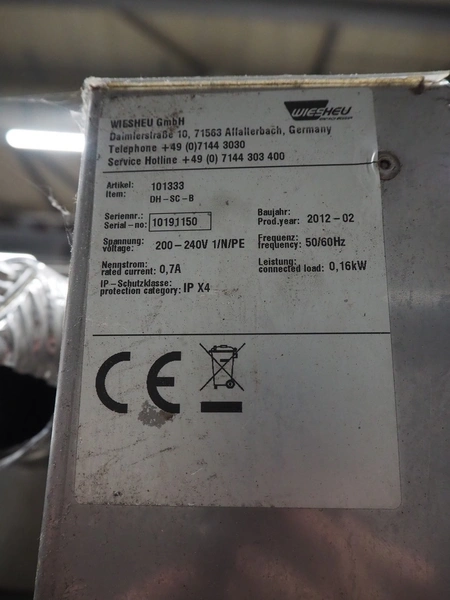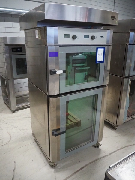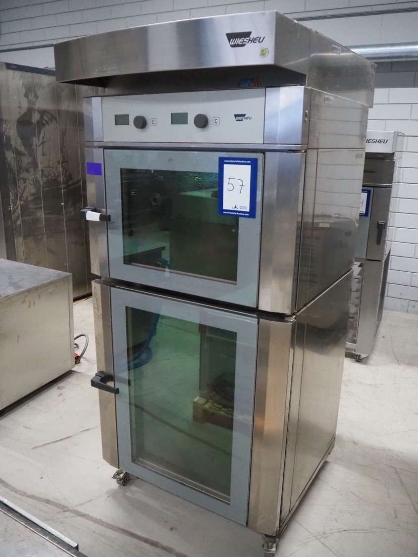 Wiesheu GmbH mobile double stacked oven, model: B08-B04-EM-Va, serial number: 10191059, year of construction: 2012-12, 400 V, 3 Ph, 50 Hz, 32 A, 20.8 kW, 5 and 10 floors, dimensions each floor: 620 mm x 400 mm, total dimensions: 930 mm x 1200 mm x 2070 mm.