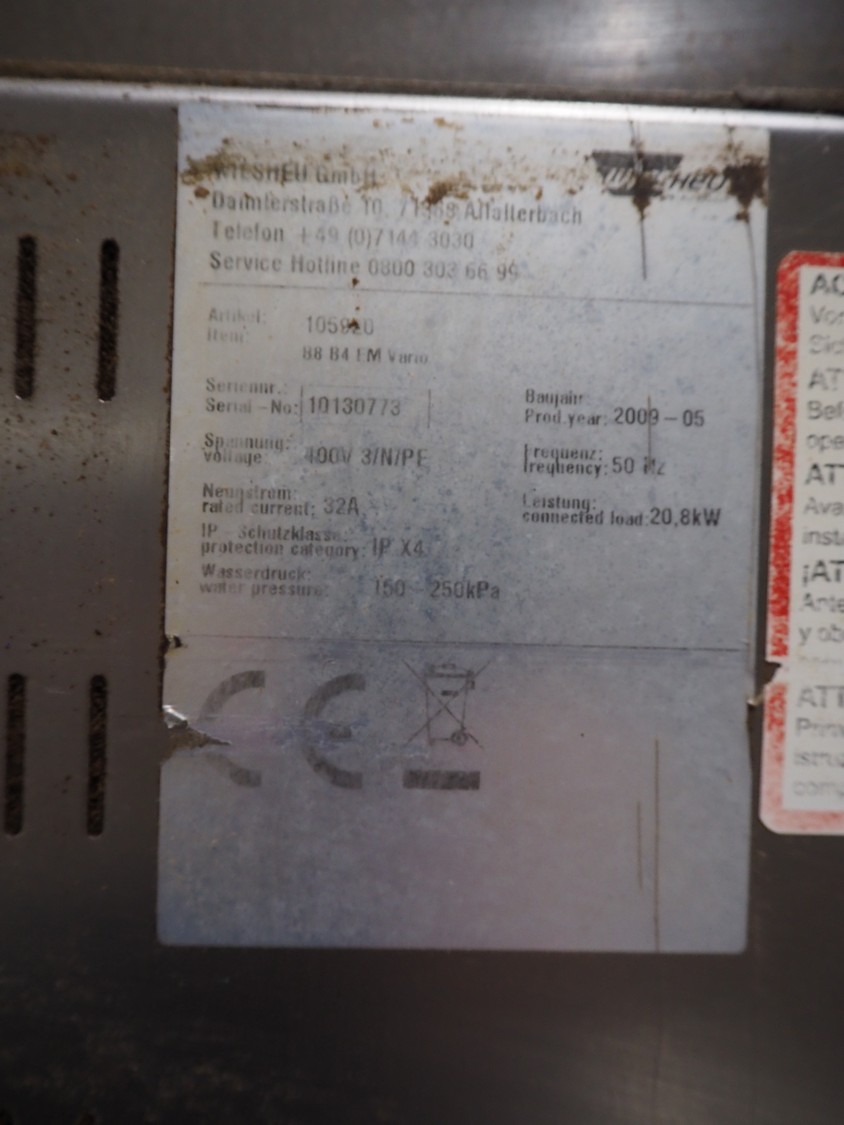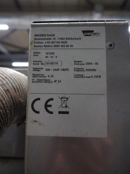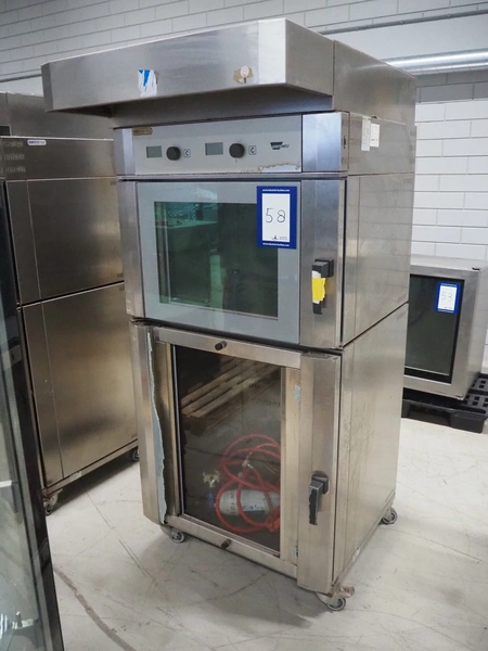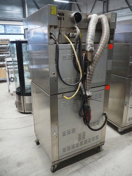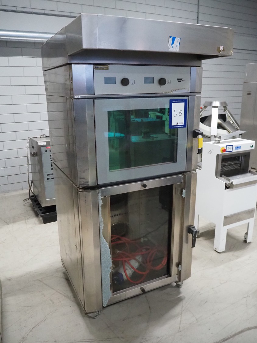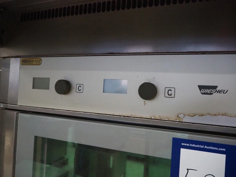 Wiesheu GmbH mobile oven, model: B08-B04-EM-VA, serial number: 10130773, year of construction: 05-2009, 400 V, 3 Ph, 50 Hz, 32 A, 20.8 kW, 5 and 10 floors, dimensions each floor: 610 mm x 400 mm, total dimensions: 1000 mm x 1100 mm x 2070 mm. Glass broken.