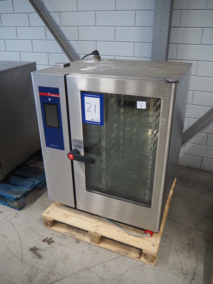 Eloma combi steamer, 11 floors, dimensions floors: (11x) 520 mm x 320 mm, total dimensions: 920 mm x 850 mm x 1150 mm.