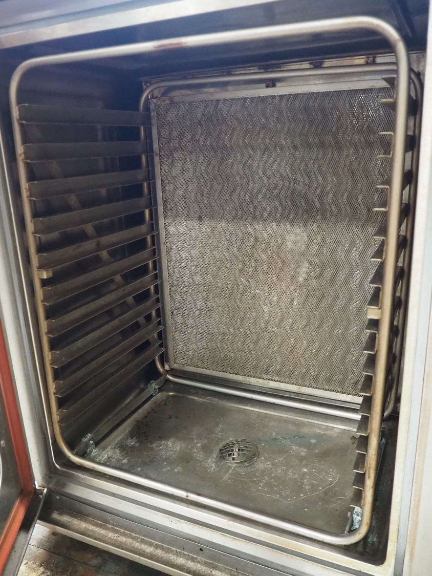 Lainox combi steamer, type: ME/ 110 S, 415 V, 50 Hz, 1/16 kW, 10 floors, dimensions floors: (10x) 535 mm x 360 mm, total dimensions: 940 mm x 900 mm x 1050 mm.