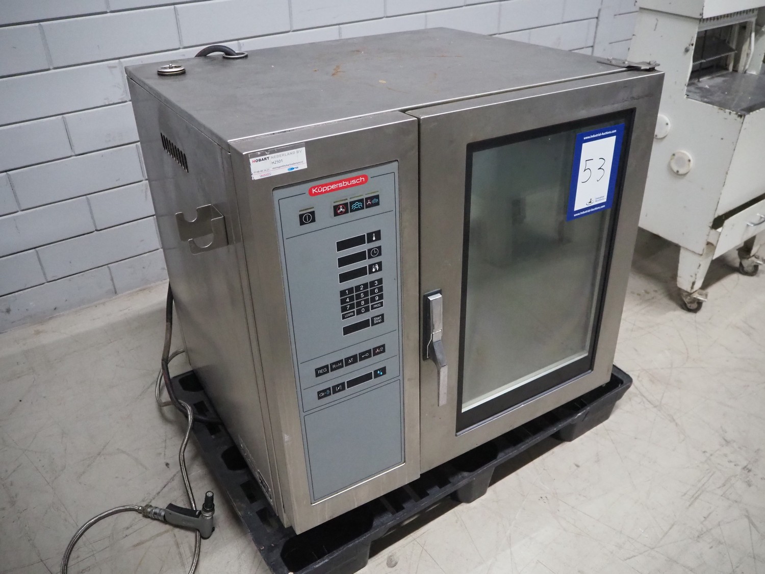 Küppersbusch AG combi steamer, type: KEG 0066, 400 V, 50 Hz, 18.9 kW, 10 floors, dimensions floors: (10x) 330 mm x 550 mm, total dimensions: 1020 mm x 850 mm x 950 mm.