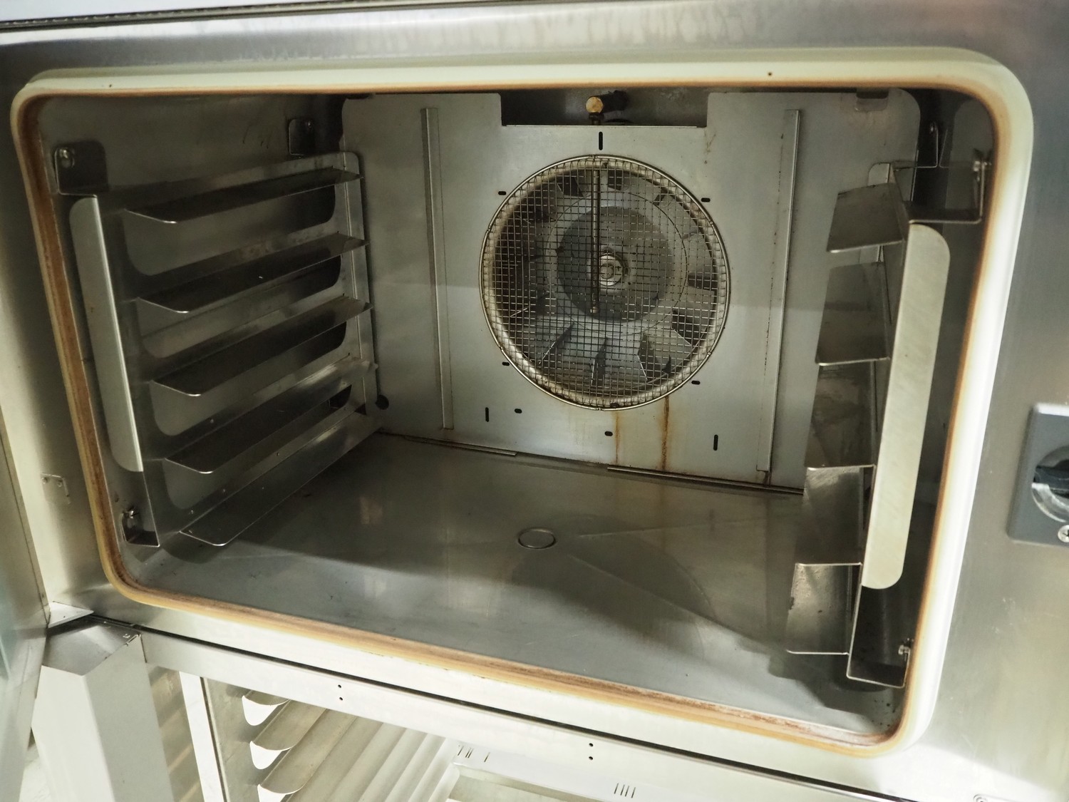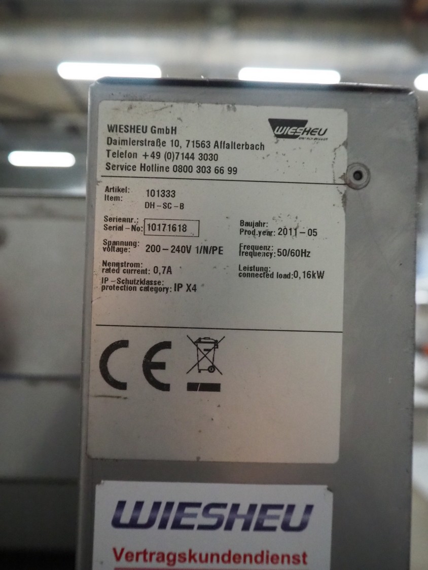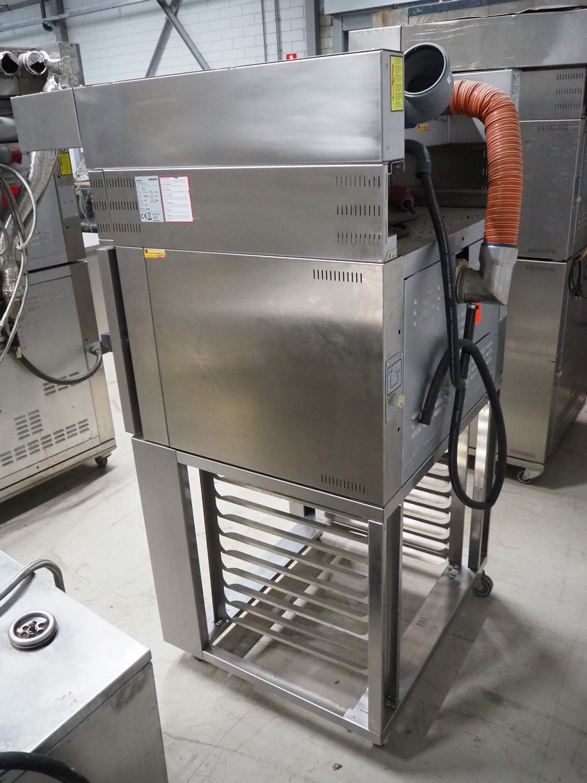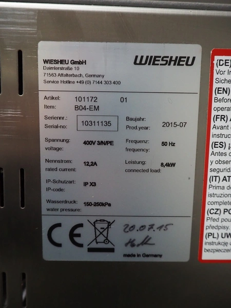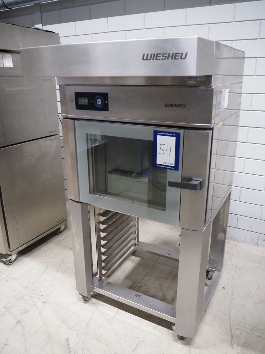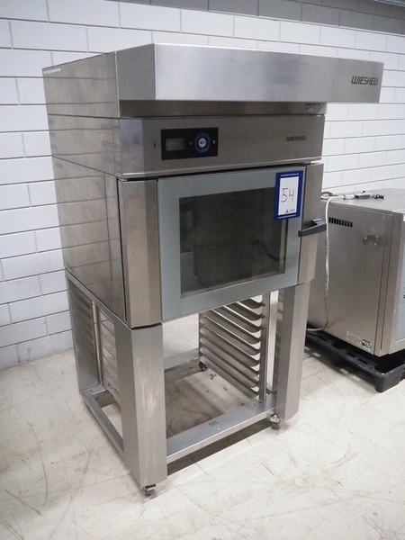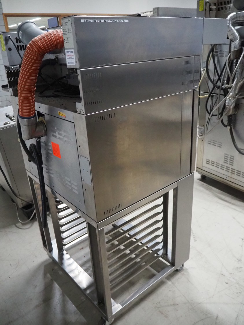 Wiesheu GmbH mobile oven, model: B04-EM, serial number: 10311135, year of construction: 07-2015, 400 V, 3 Ph, 50 Hz, 12.2 A, 8.4 kW, 5 floors, dimensions each floor: 610 mm x 400 mm, total dimensions: 1200 mm x 950 mm x 1800 mm.