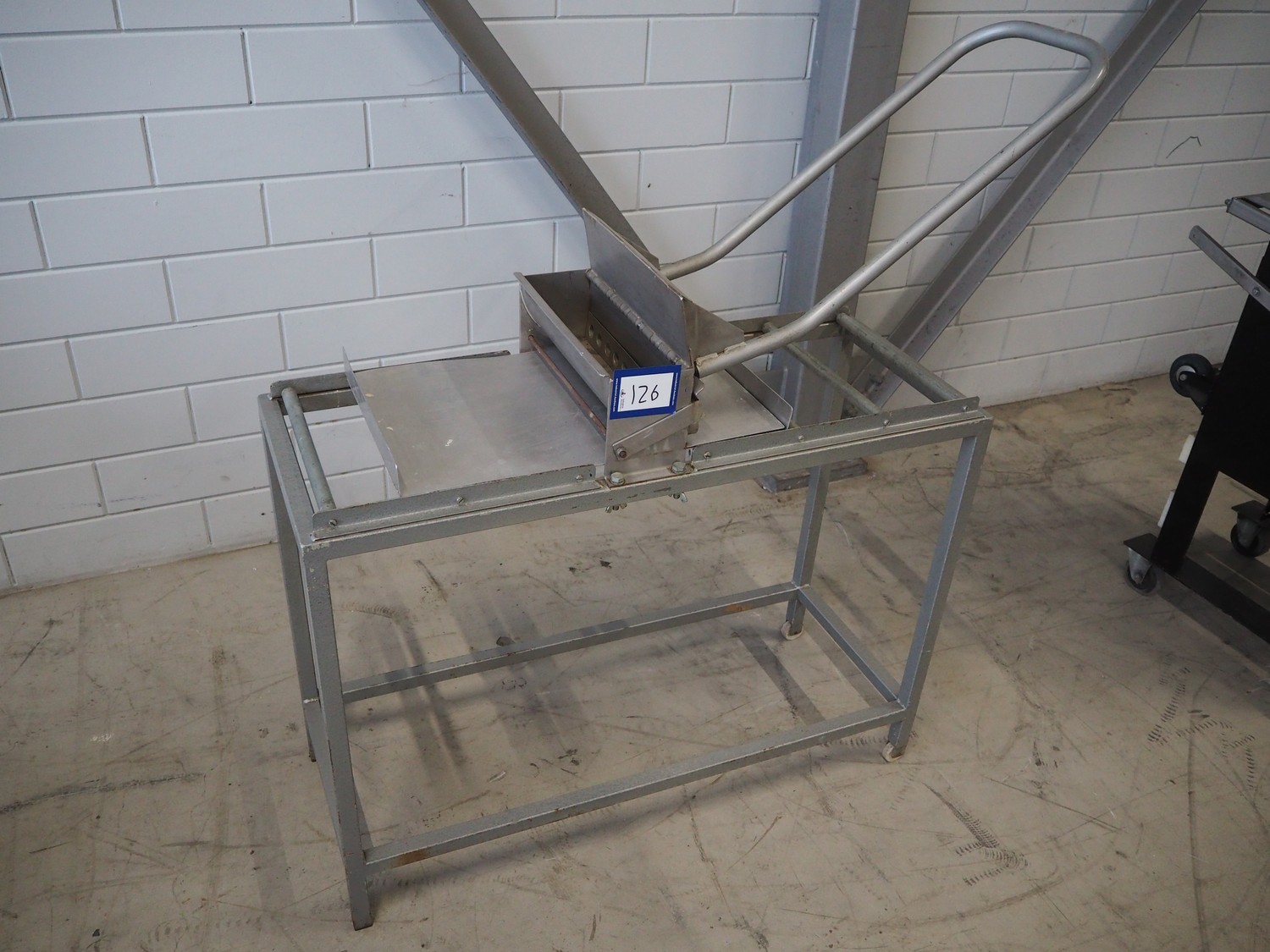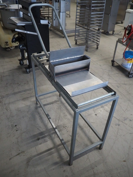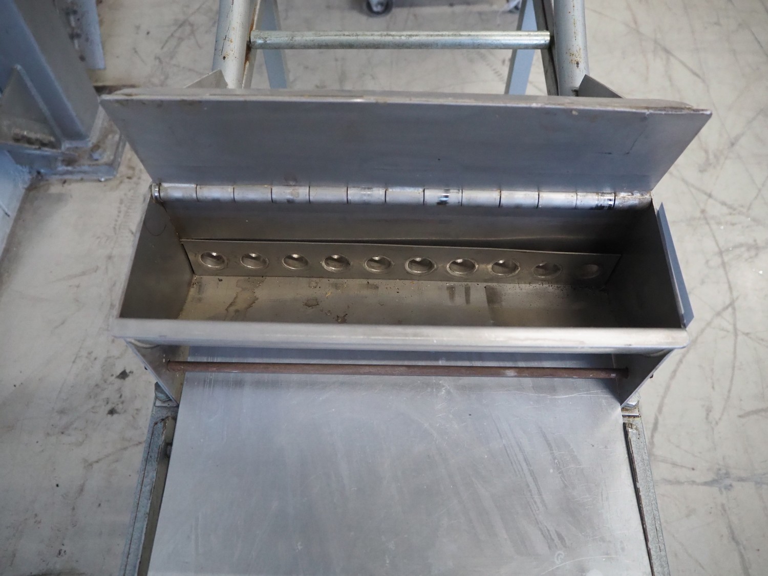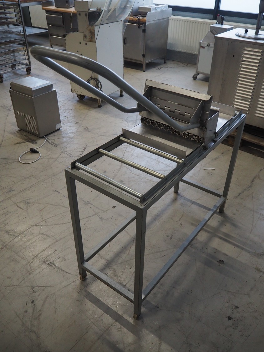 S/s almond press on mobile frame, diameter form: (10x) 20 mm, total dimensions: 1420 mm x 430 mm x 1000 mm.