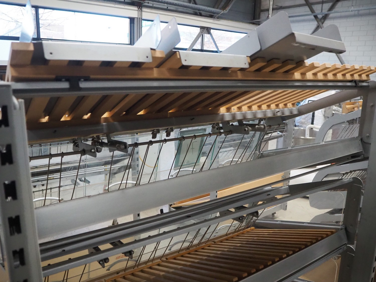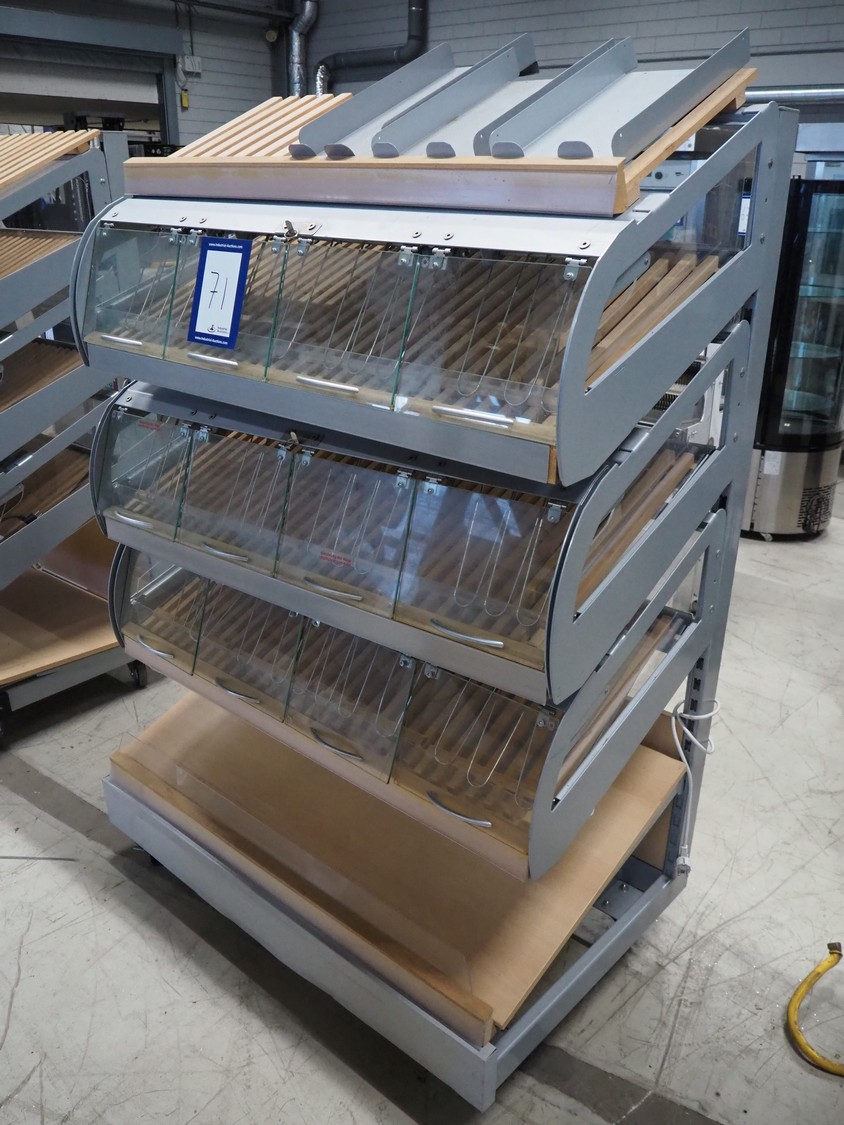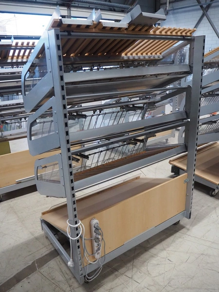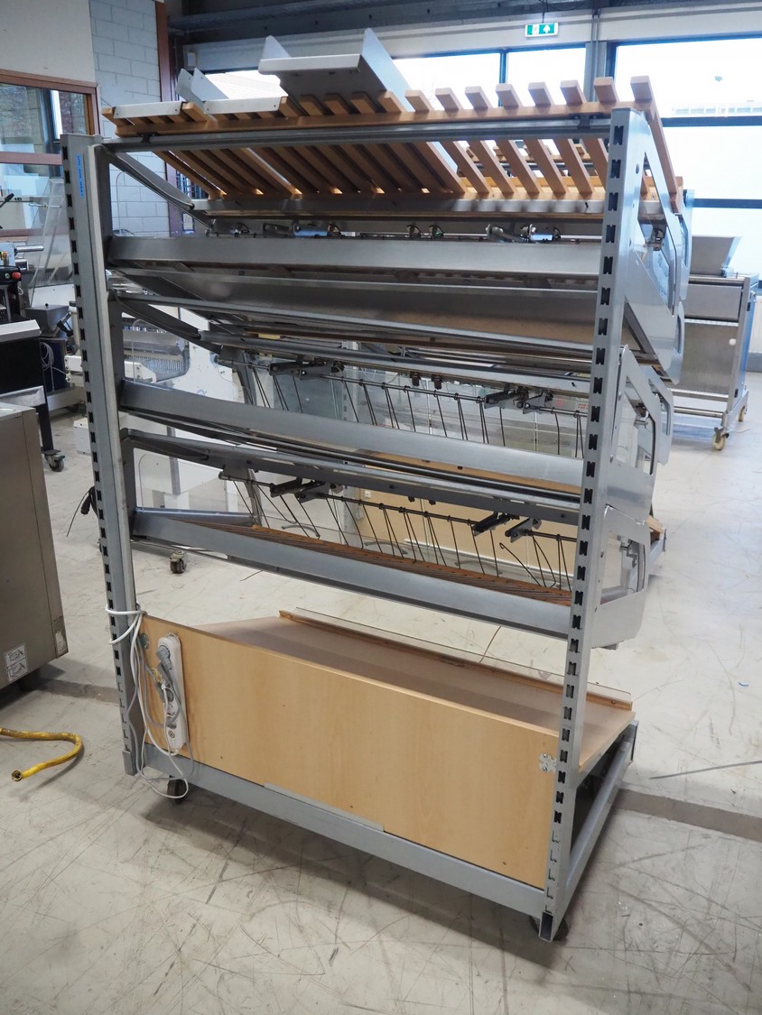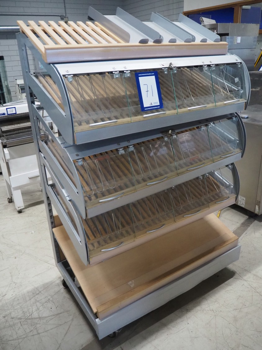 Mobile trolley for bread trays, dimensions: 1260 mm x 900 mm x 1820 mm.