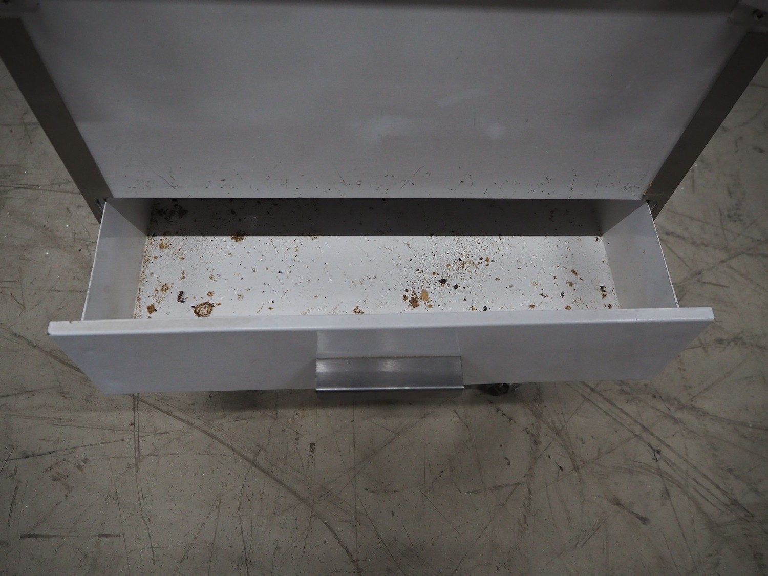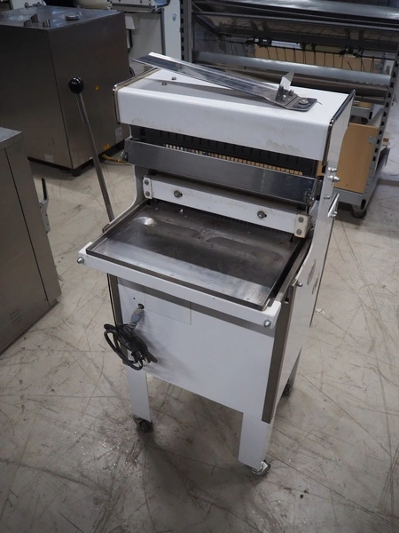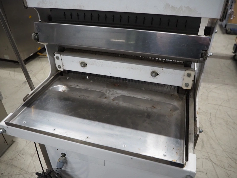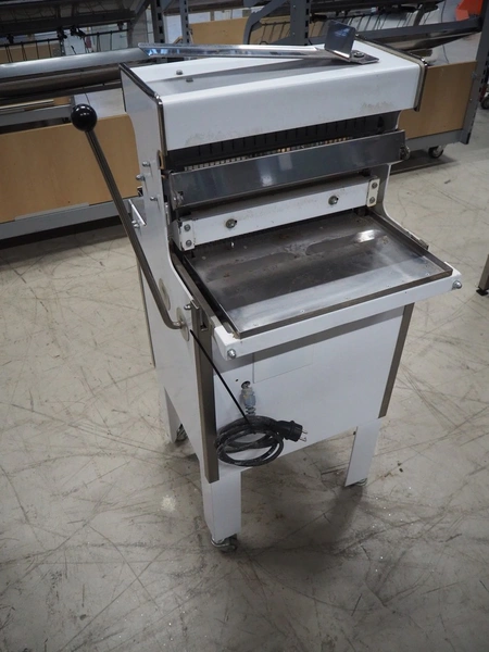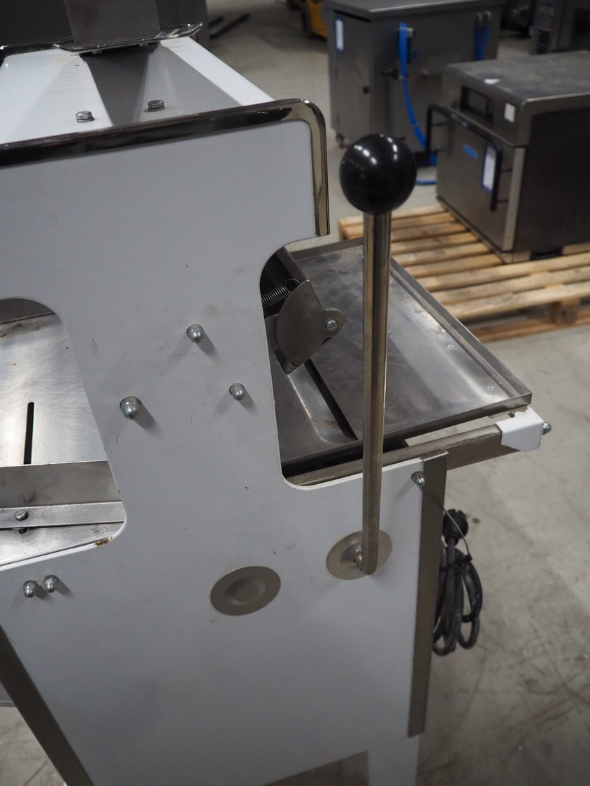 Mobile bread slicer, 34 knives, distance between knives: 12 mm, total dimensions: 640 mm x 660 mm x 1230 mm.