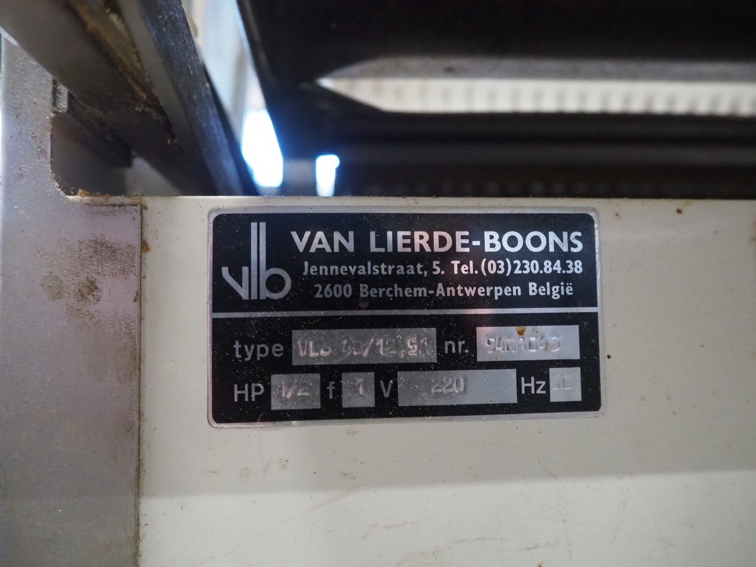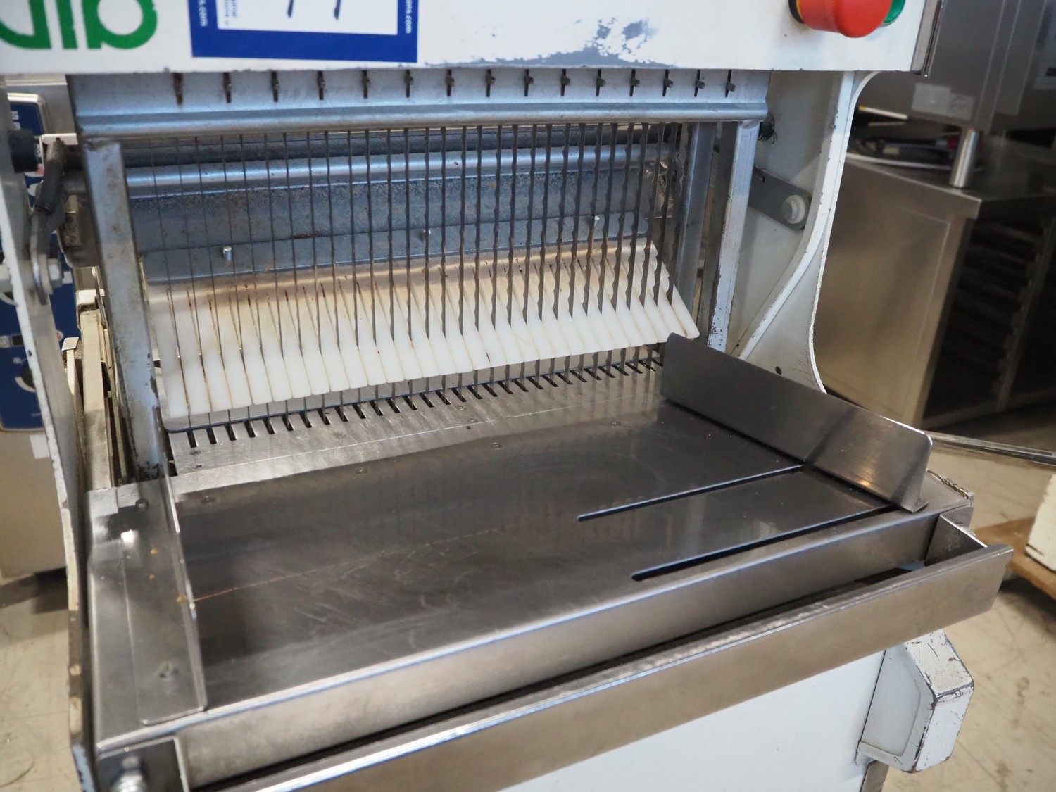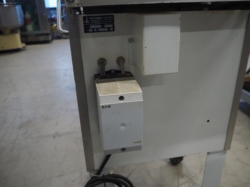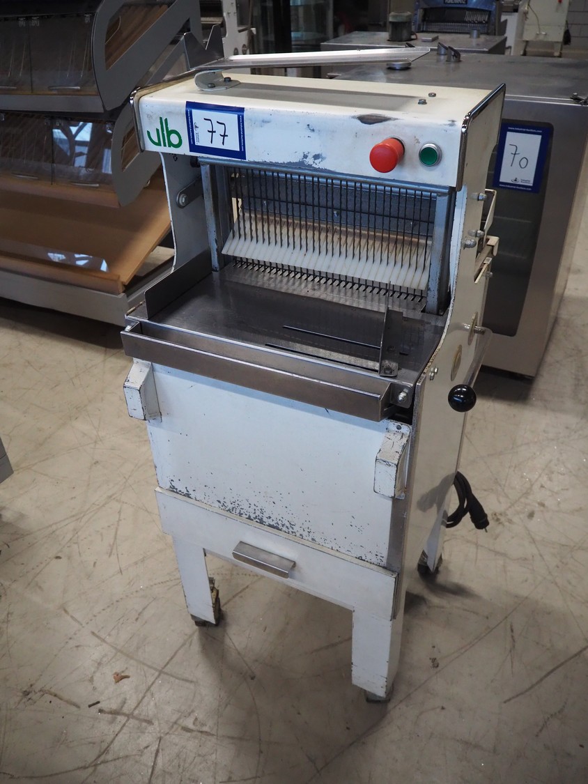 VLB mobile bread slicer, type: VL-40/12.5, number: 94NA043, 220 V, 1 Ph, 50 Hz, 30 knives, distance between knives: 12 mm, total dimensions: 650 mm x 600 mm x 1320 mm.