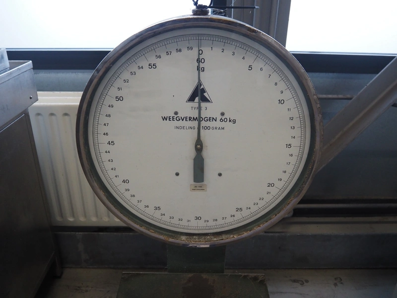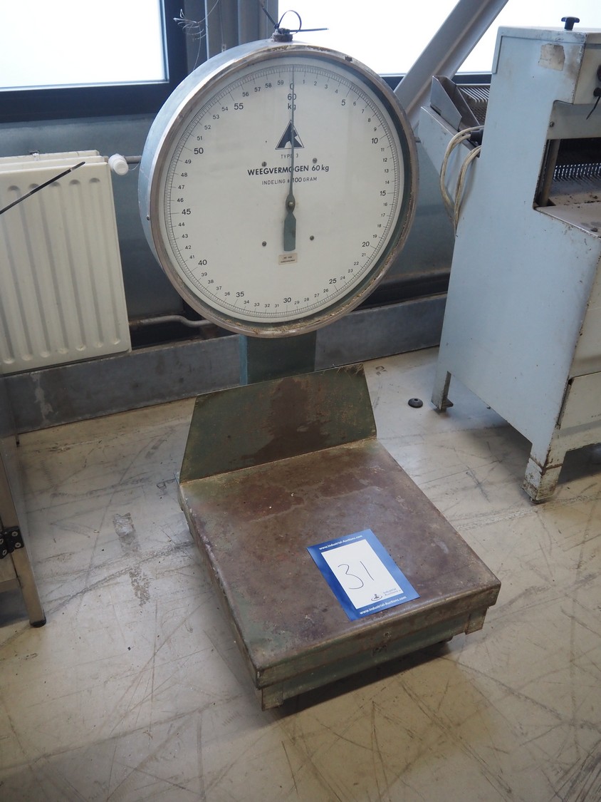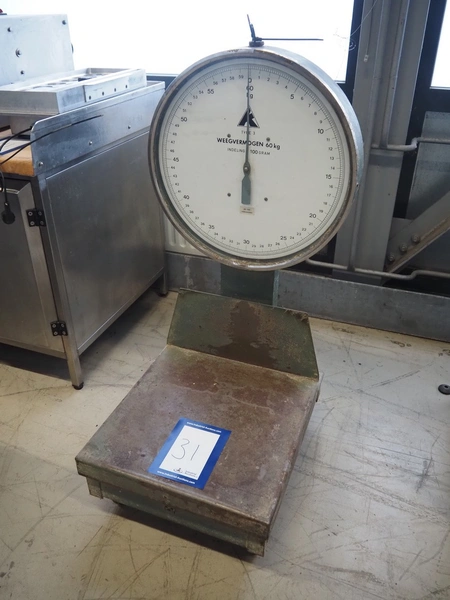 Scale, maximum capacity: 60 kg, scale dimensions: 500 mm x 500 mm, total dimensions: 500 mm x 600 mm x 1120 mm.