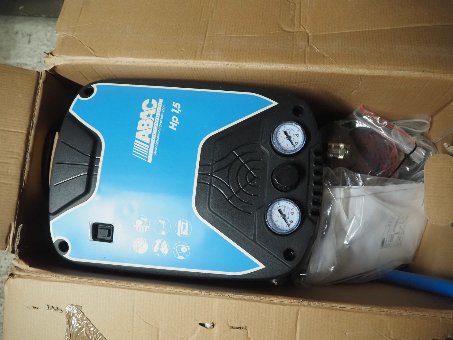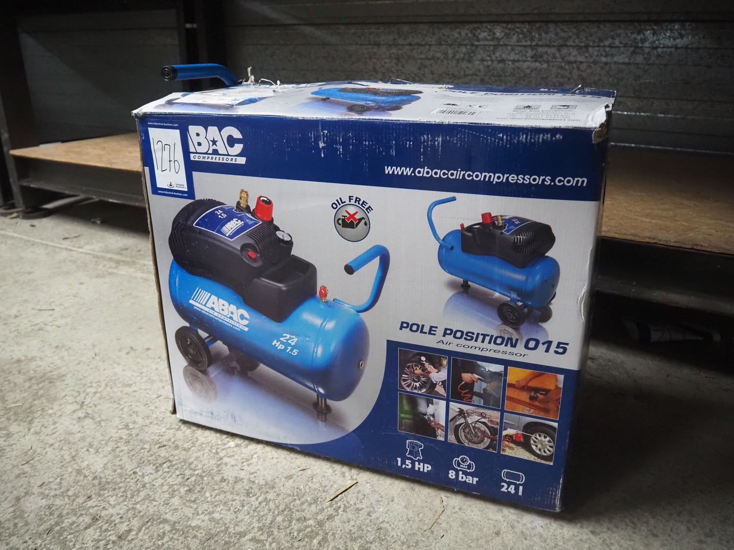 ABAC air compressor, model: POLE POSITION 015, volume: 24 litres, capacity: 8 bar.