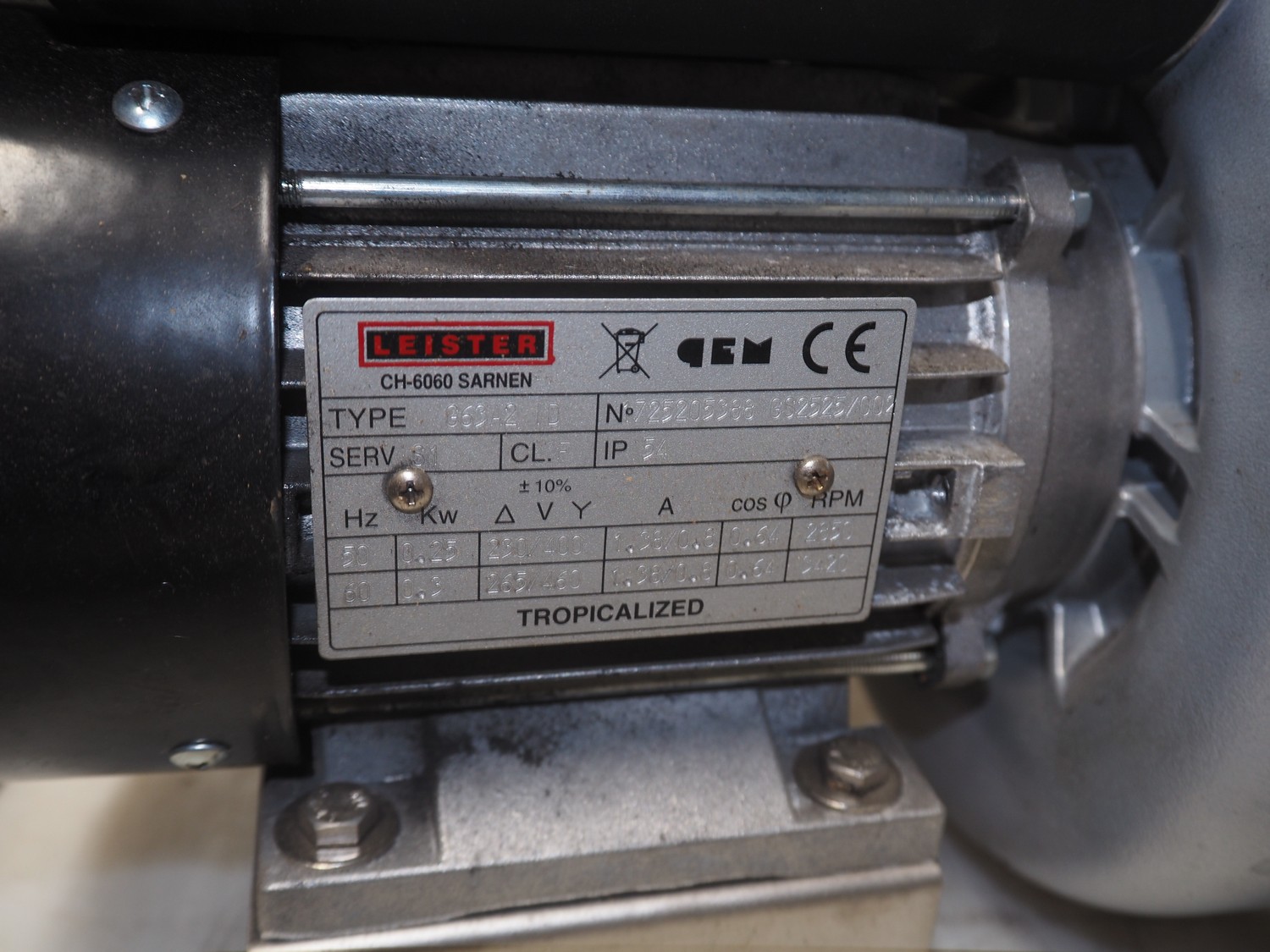 Leister blower, type: G63A21D, number: 725205388, 60 Hz, 1.38/0.8 A, 0.3 kW,