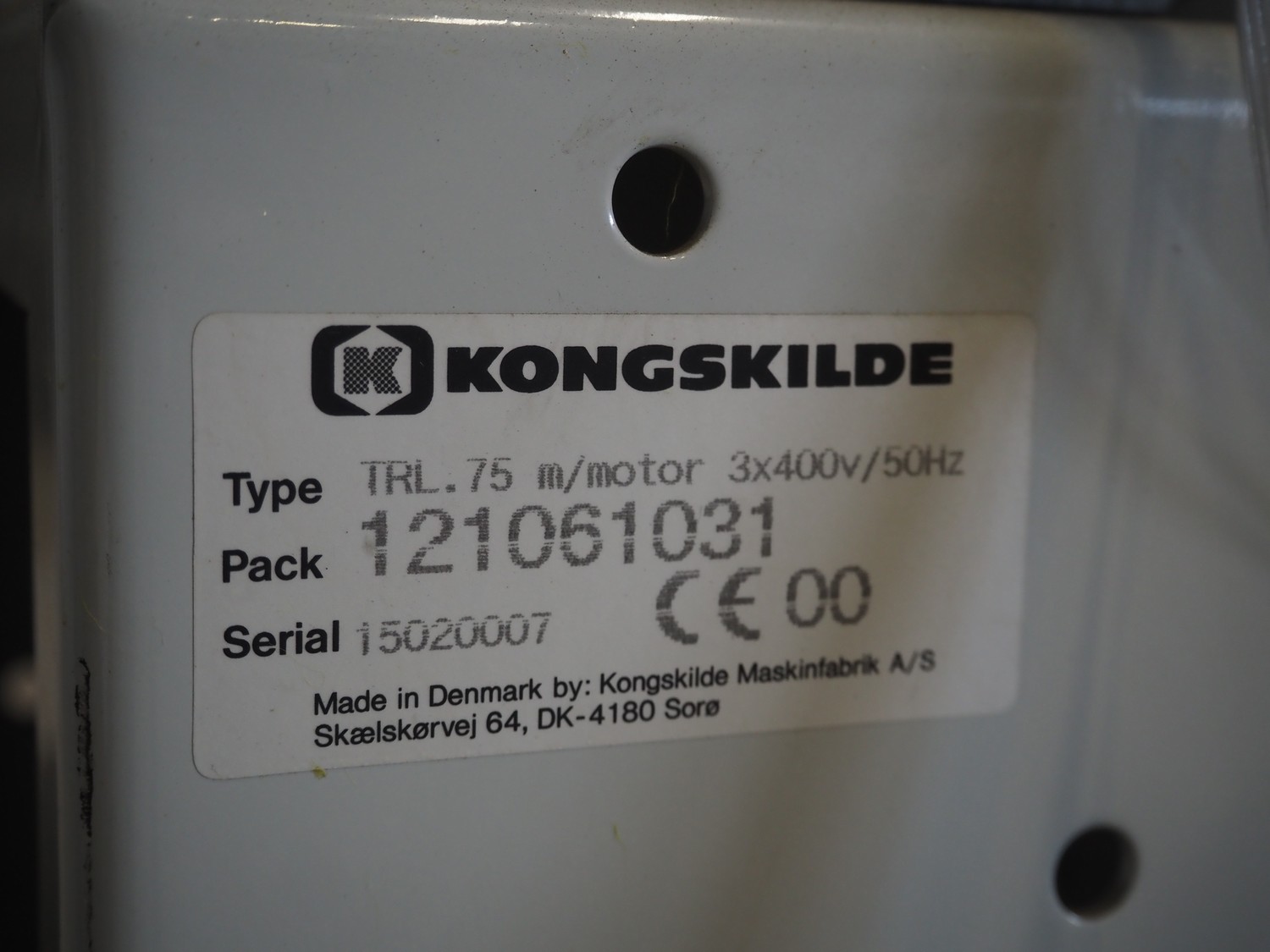 Kongskilde mobile blower, type: TRL. 75, serial number: 15020007, 400 V, 3 Ph, 50 Hz, dimensions: 800 mm x 550 mm x 870 mm.