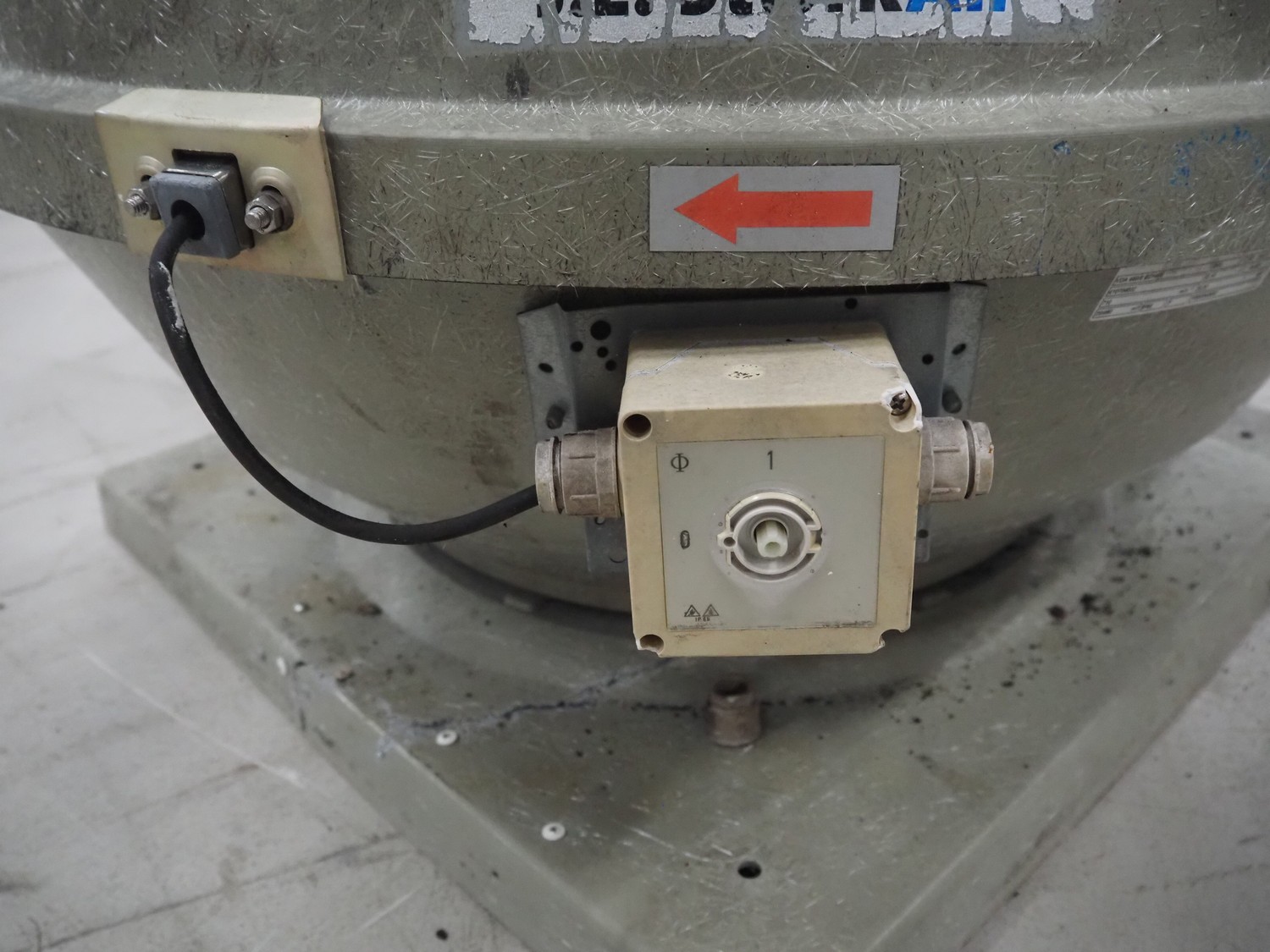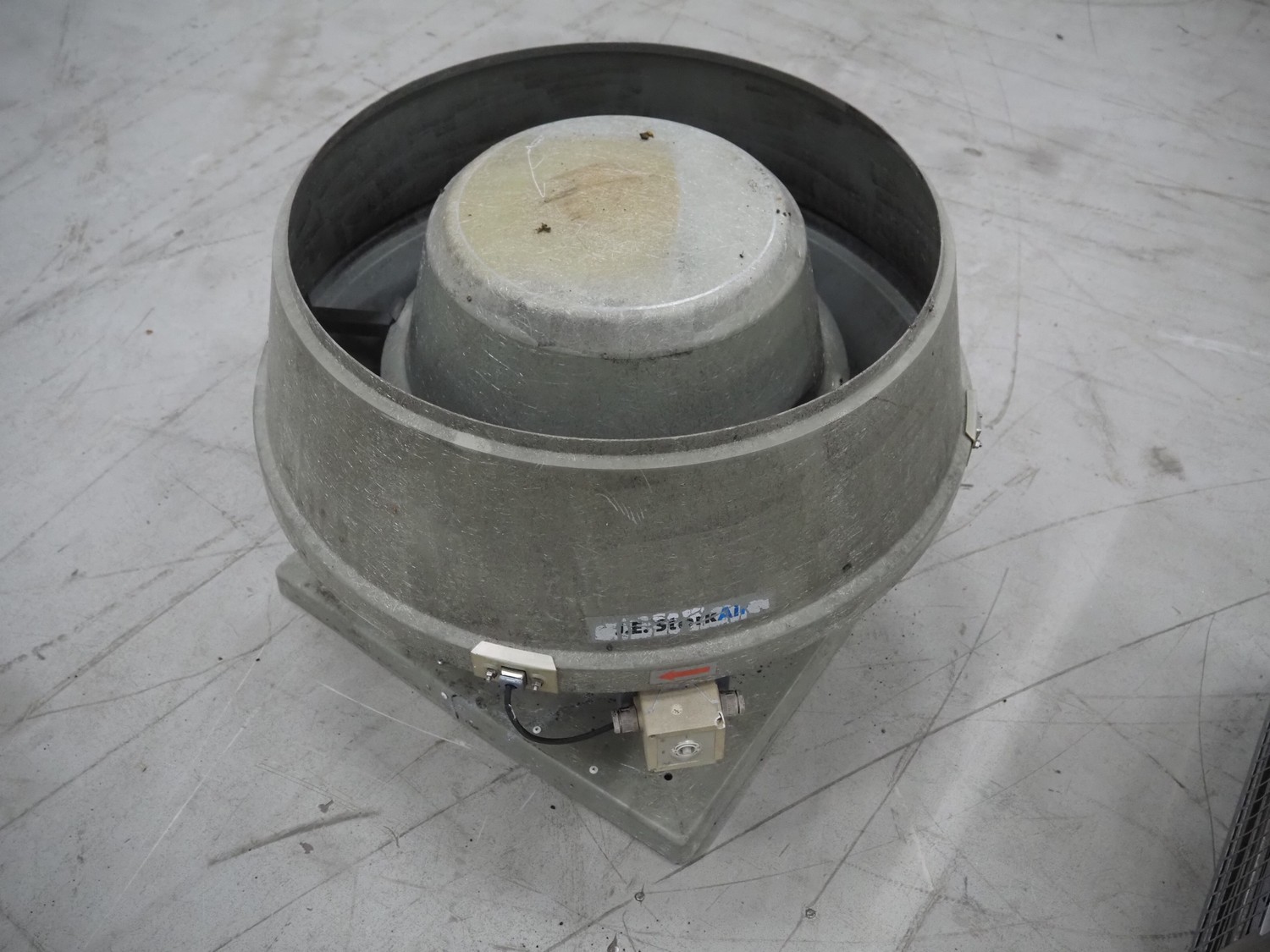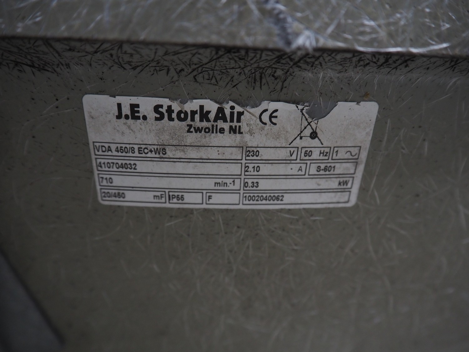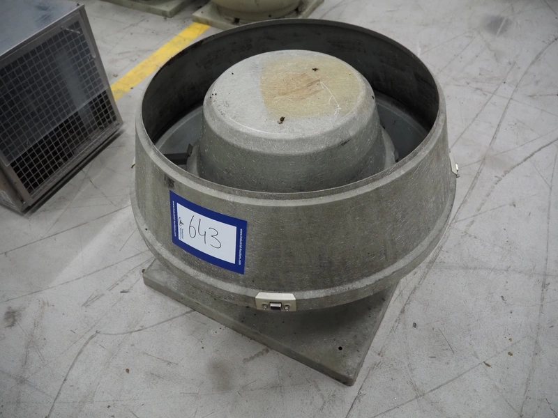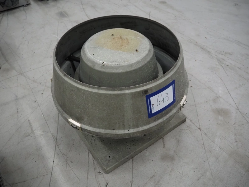 J.E. StorkAir roof ventilator, model: VDA 450/8 EC+WS, number: 410704032, 230 V, 1 Ph, 50 Hz, 2.10 A, 0.33 kW, diameter ventilator: 900 mm, height ventilator: 630 mm.