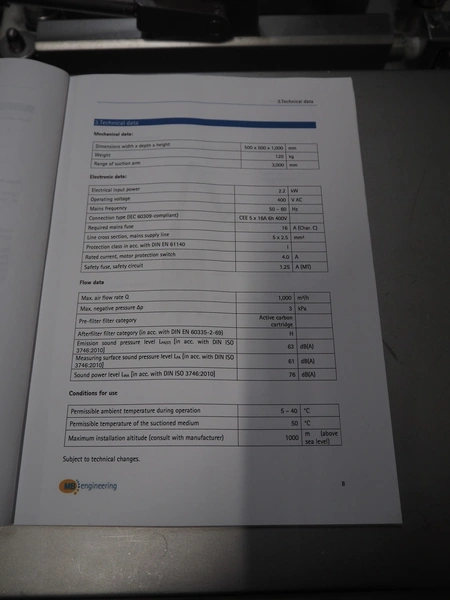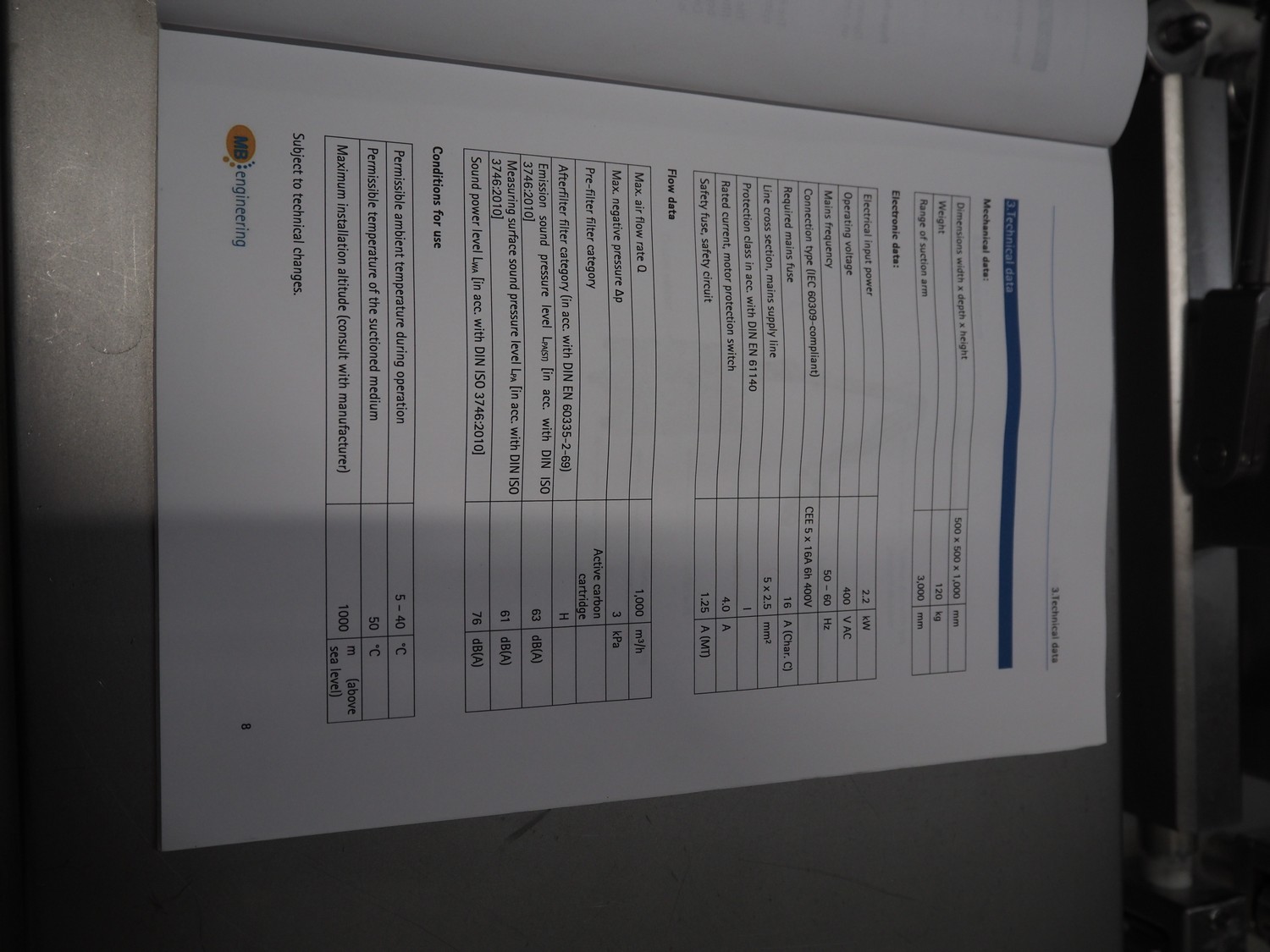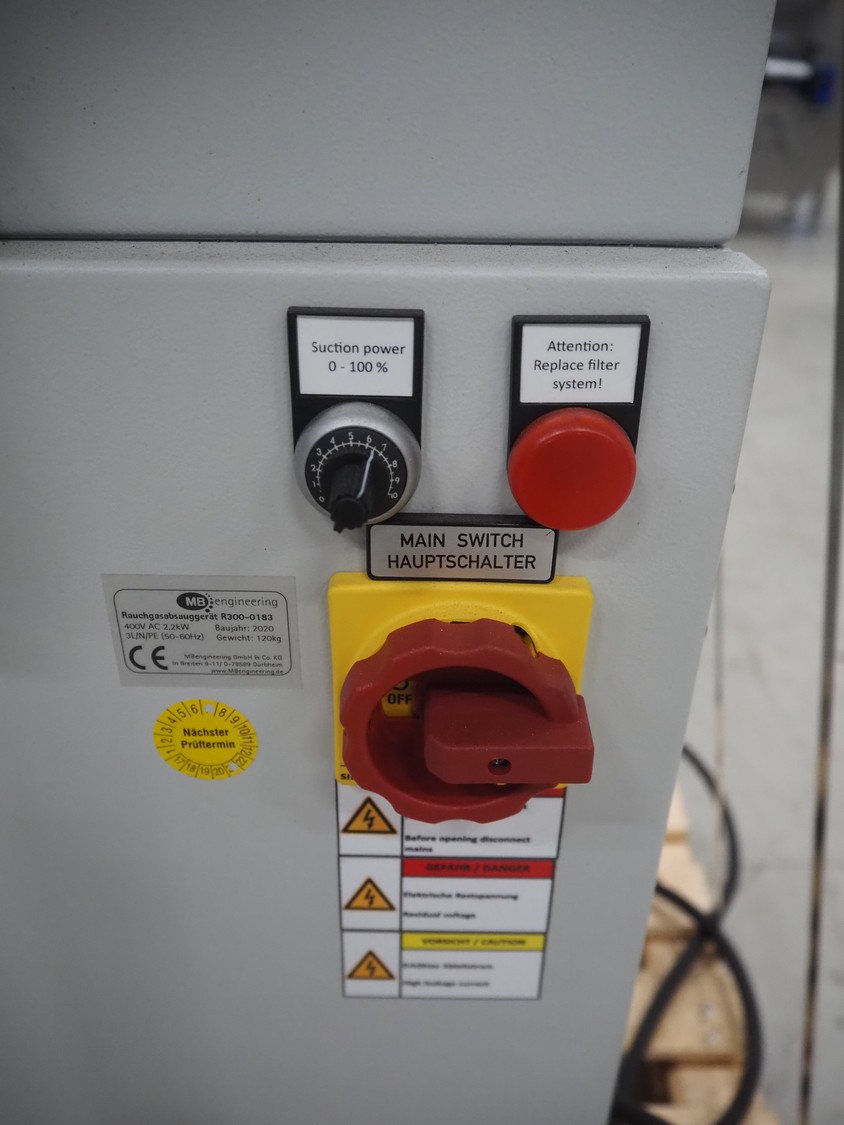 MB Engineering flue gas suction device, type: R300, dimensions: 1500 mm x 900 mm x 2500 mm.