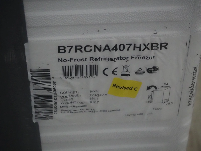 Beko No-Frost refrigerator/freezer, type: B7RCNA407HXBR, 220-240 V, dimensions: 600 mm x 750 mm x 2100 mm.
