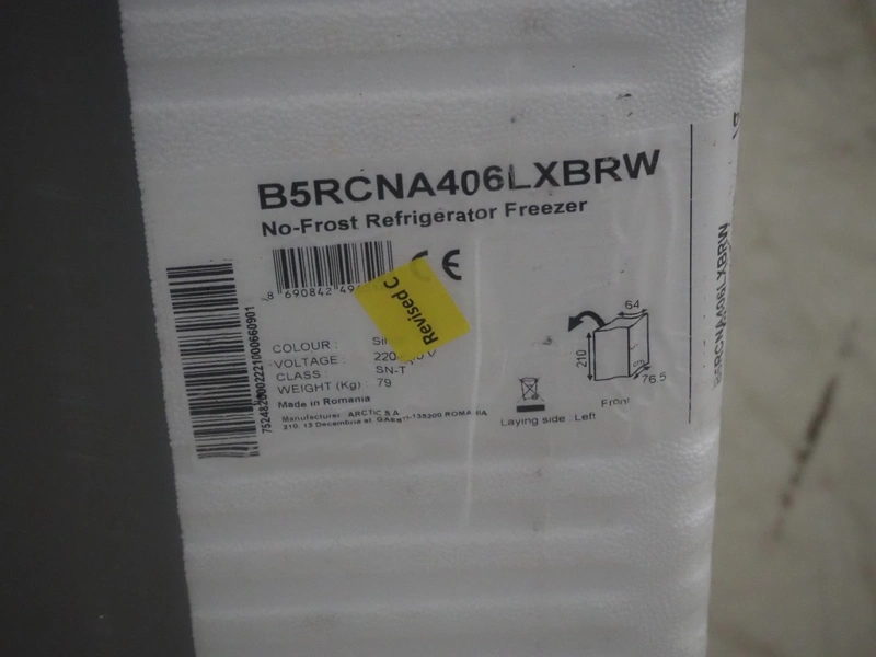 Beko No-Frost refrigerator/freezer, type: B5RCNA406LXBRW, 220-240 V, dimensions: 600 mm x 750 mm x 2100 mm.