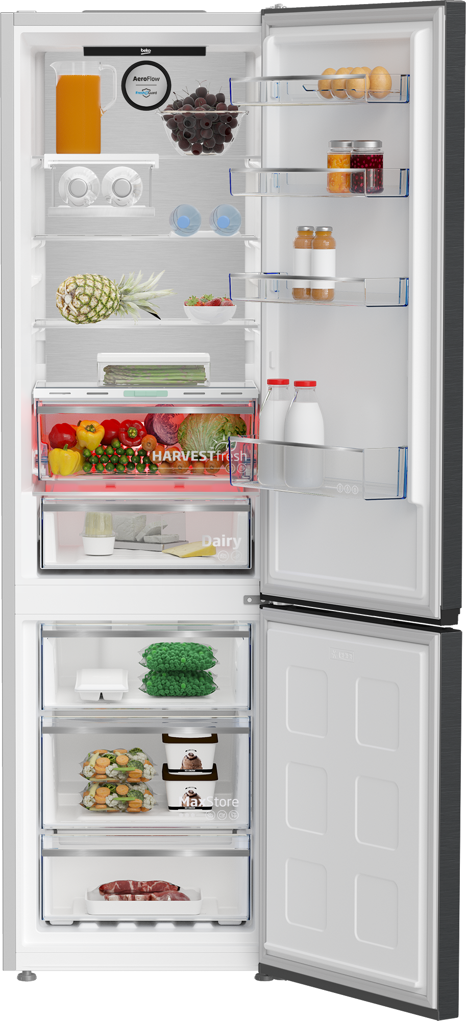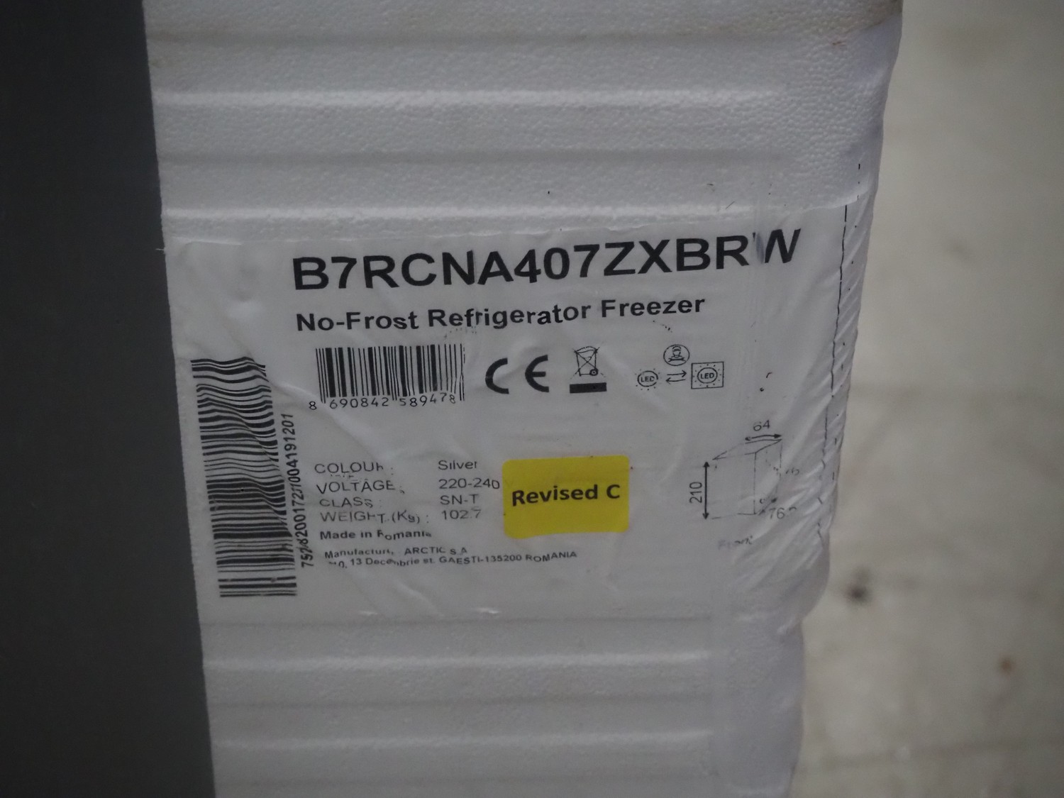 Beko No-Frost refrigerator/freezer, type: B7RCNA407ZXBRW, 220-240 V, dimensions: 600 mm x 750 mm x 2100 mm.