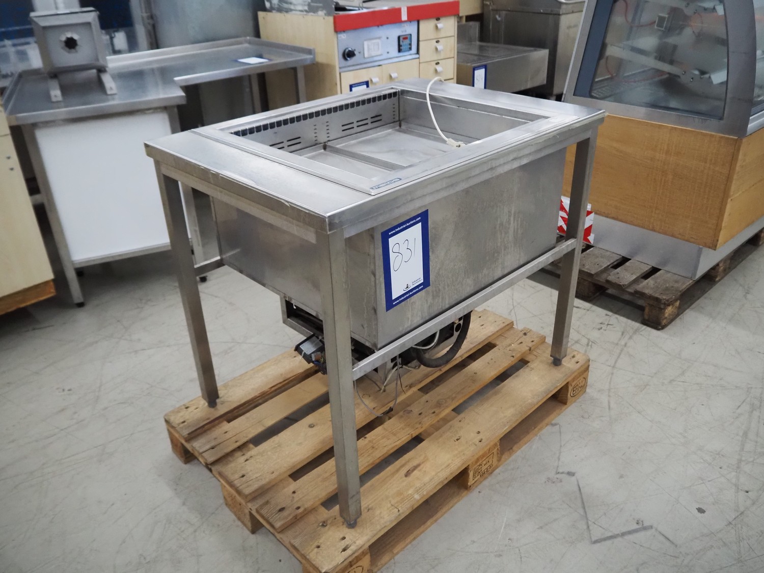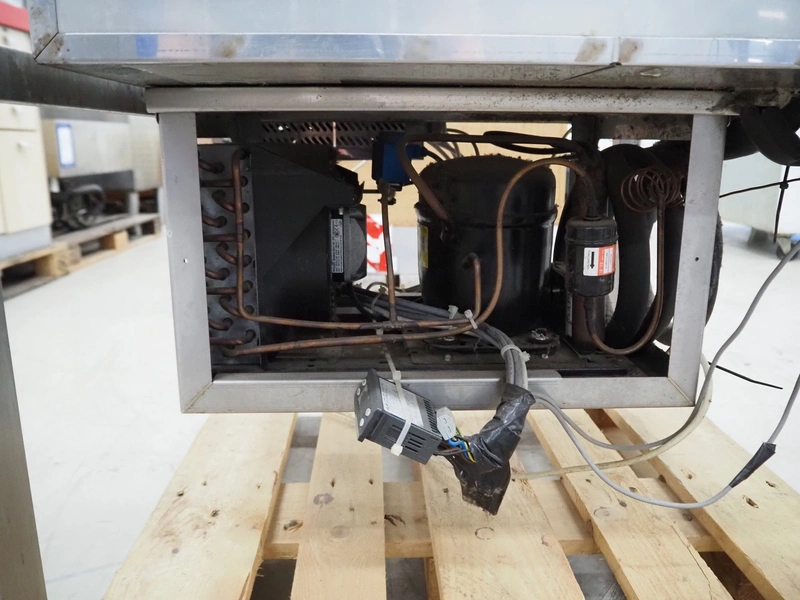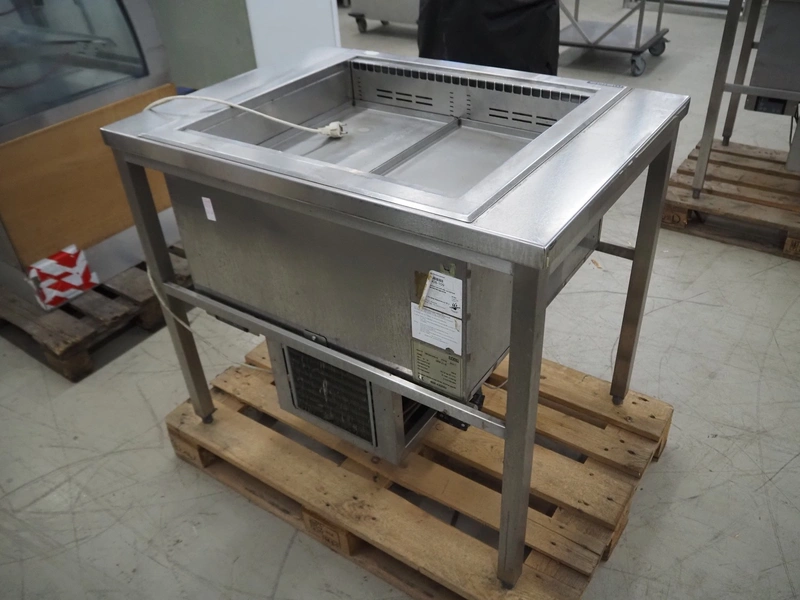 Ideal s/s refrigerated counter, type: UKW 2/1-E, serial number: Wehako 270749, year of construction: 08/04/2017, 230 V, 50 Hz, 338 W, refrigerant: R134A / 0.500 kg, inside dimensions: 660 mm x 540 mm, total dimensions: 1010 mm x 730 mm x 860 mm.