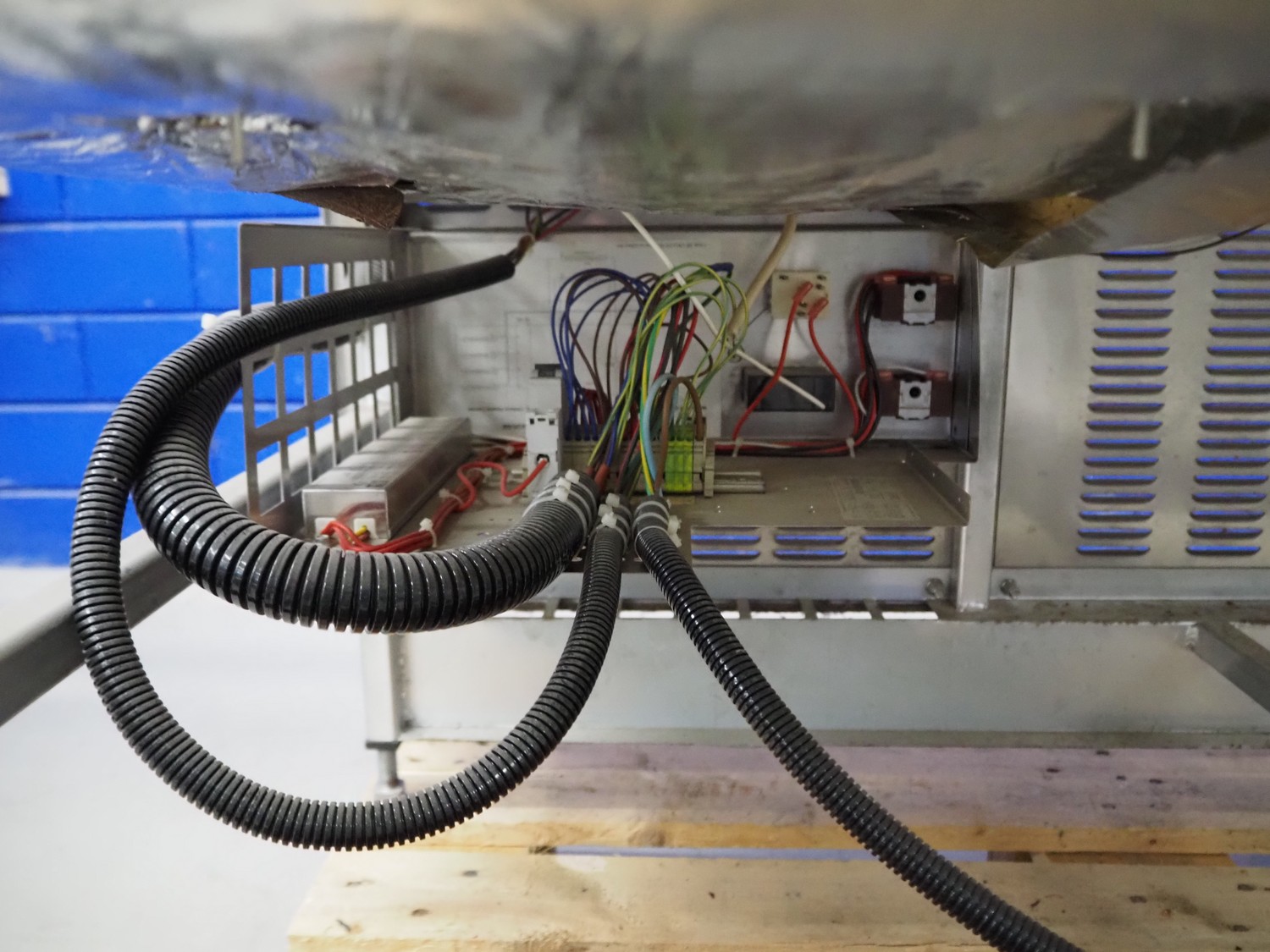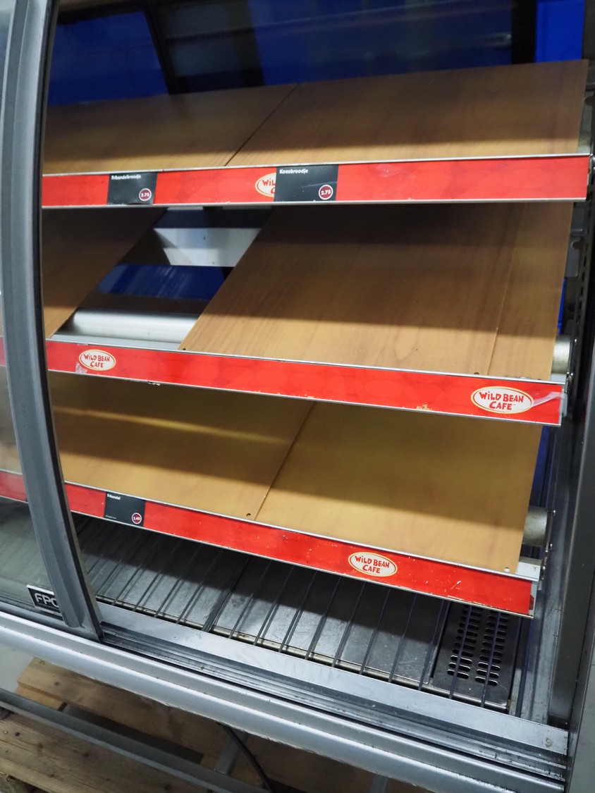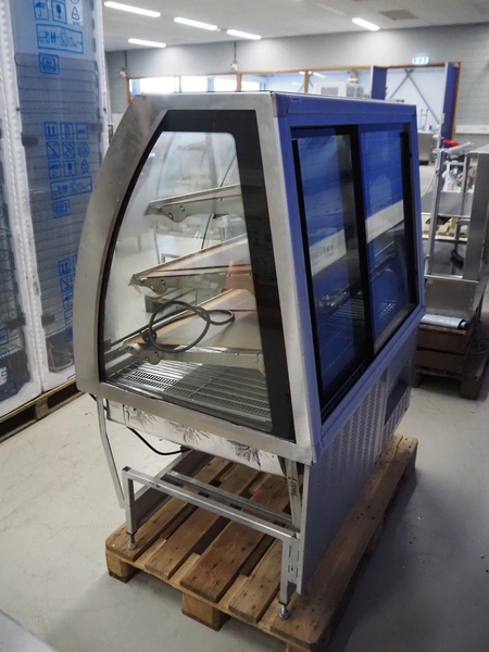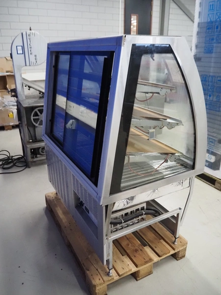 FPG World refrigerated showcase, dimensions: 1200 mm x 760 mm x 1430 mm. Incomplete, missing cooling compressor.