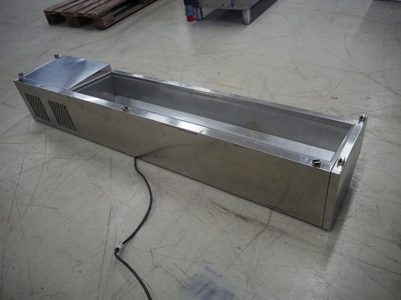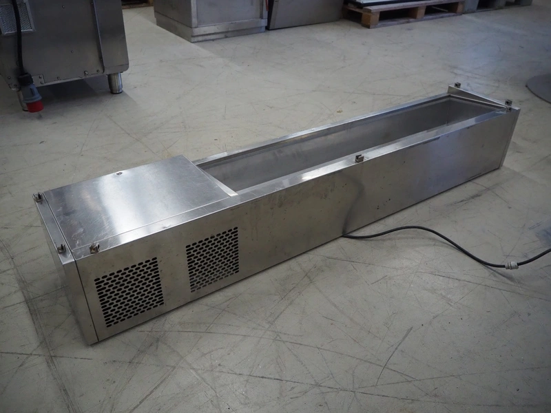 Friulinox saladette, model: Alzatina R, serial number: F200405260000034, year of construction: 2004, 230 V, 1 Ph, 50 Hz, 1.0 A, 155 W, refrigerant: R134a, 70 gram, dimensions: 1600 mm x 300 mm x 300 mm.