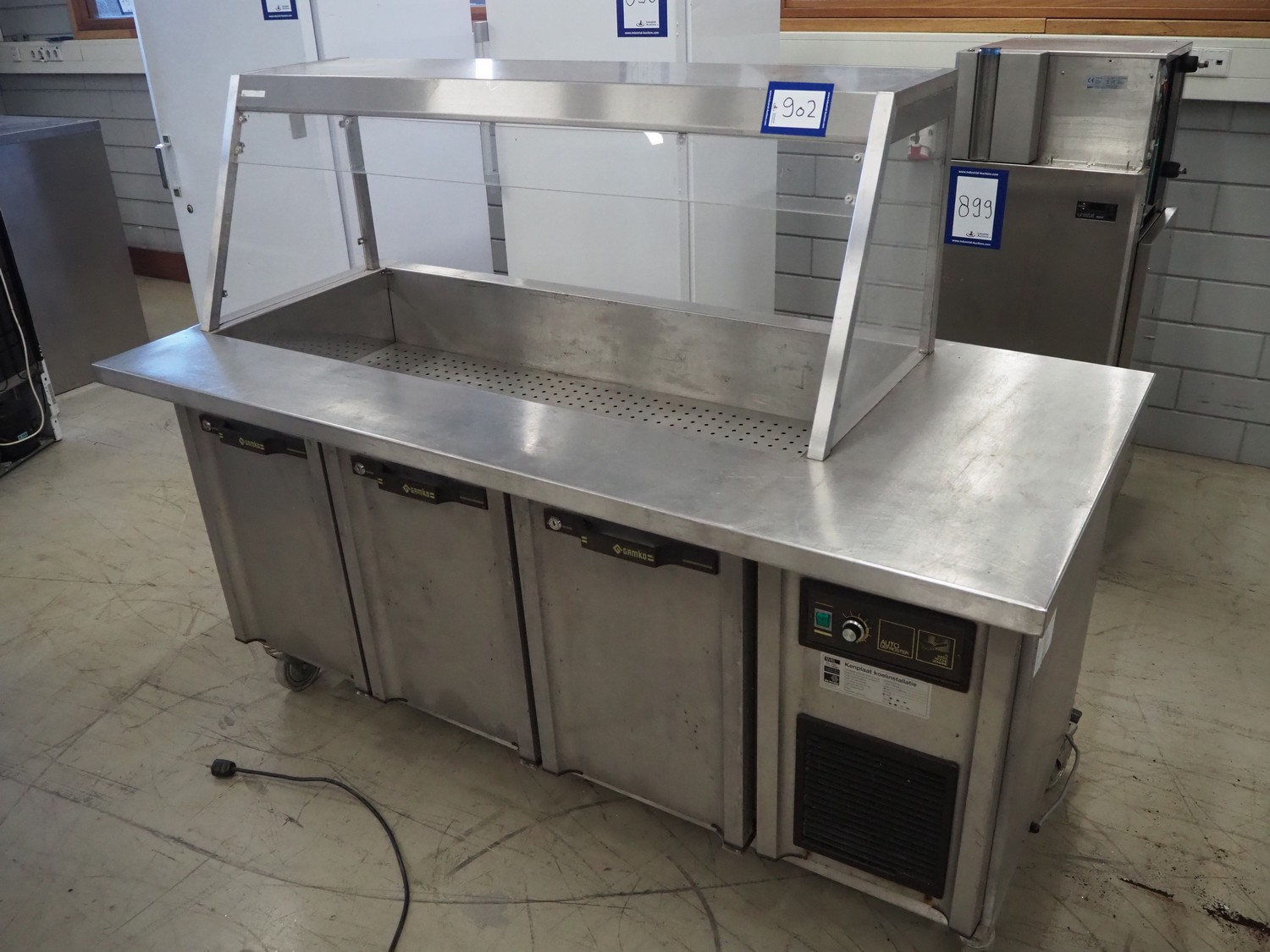 Gamko mobile refrigerated showcase, refrigerant: R12 / 0.29 kg, inside dimensions: 1280 mm x 500 mm x 180 mm, total dimensions: 1750 mm x 780 m mx 1400 mm.
