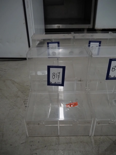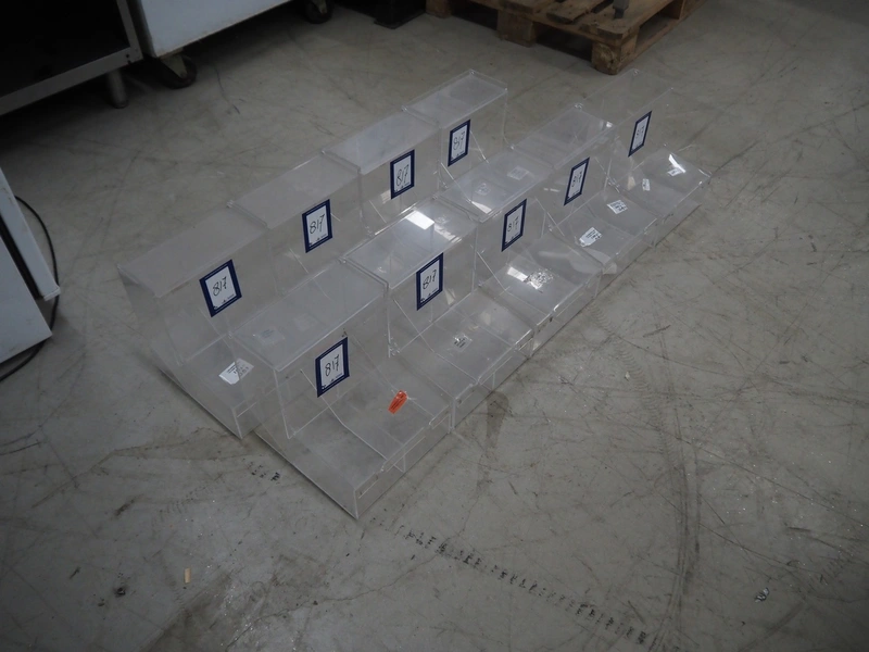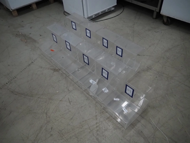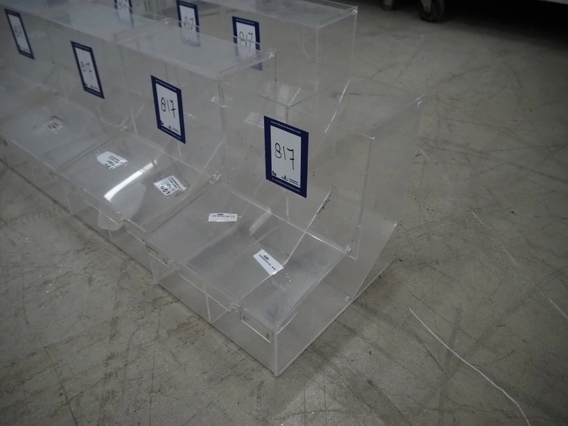 9 plastic candy dispenser, dimensions: (9x) 300 mm x 250 mm x 290 mm.