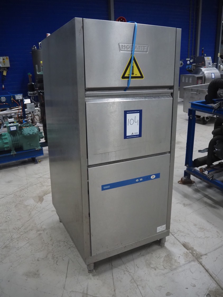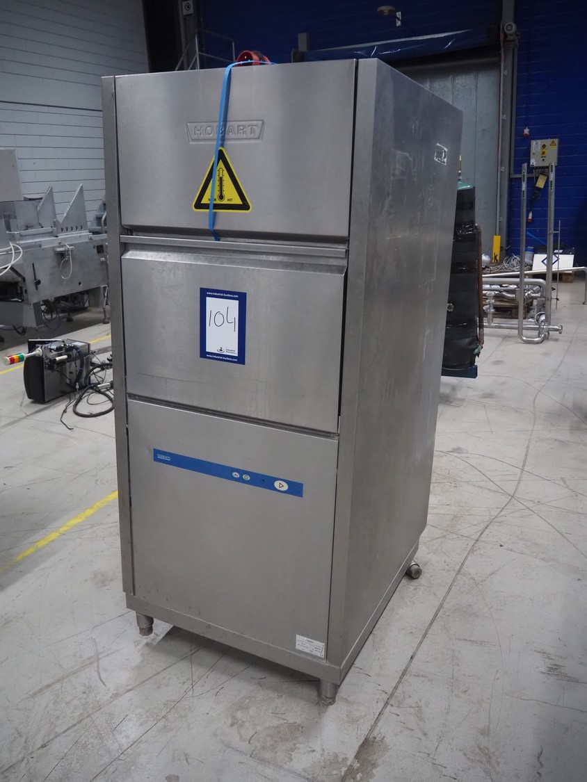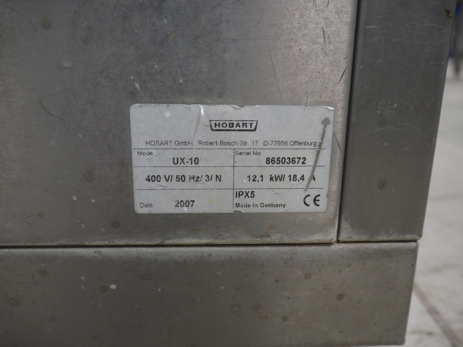 Hobart dishwasher, model: UX-10, serial number: 86503672, year of construction: 2007, 400 V, 3 Ph, 50 Hz, 18.4 A, 12.1 kW, dimensions: 800 mm x 950 mm x 1800 mm.