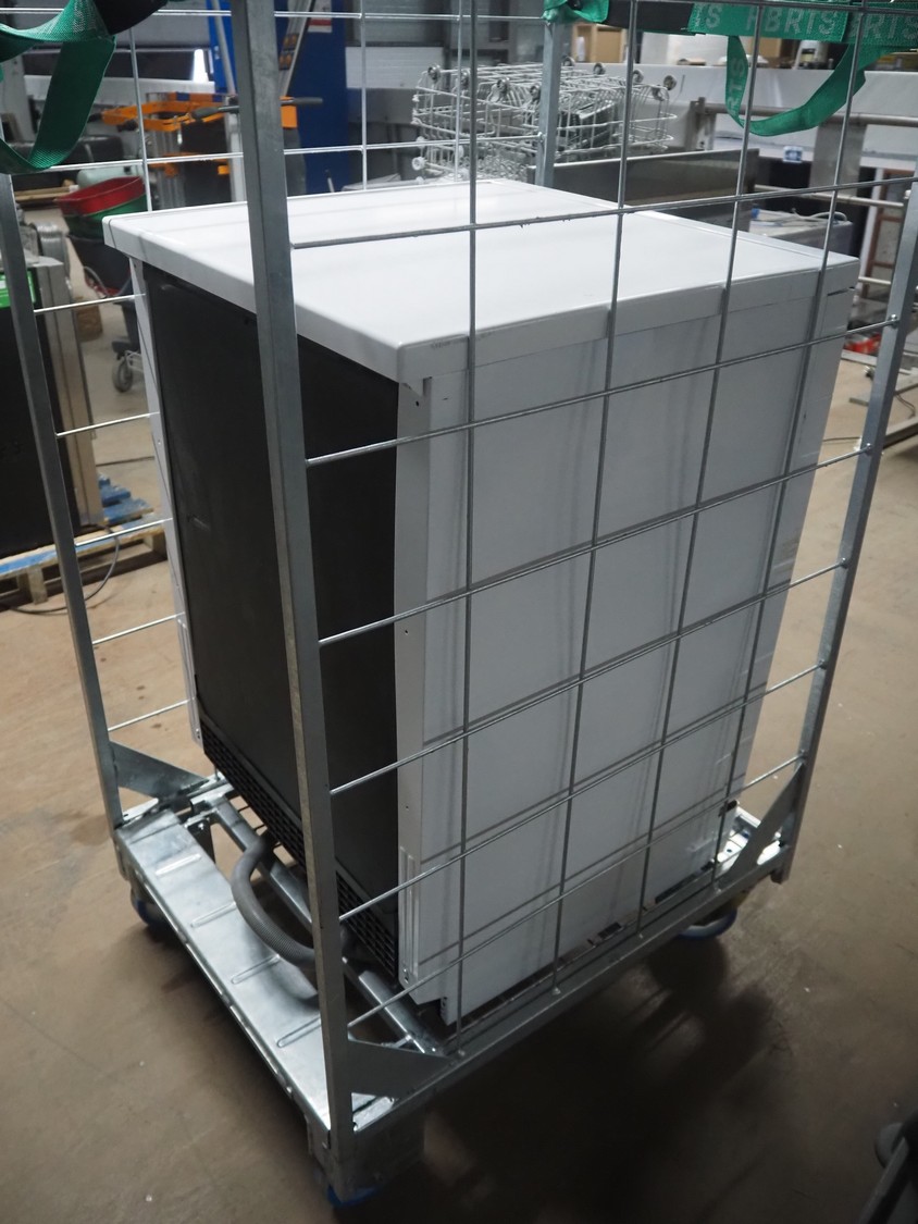 Etna dishwasher on steel trolley, dishwasher dimensions: 600 mm x 585 mm x 850 mm, total dimensions: 800 mm x 600 mm x 1900 mm.