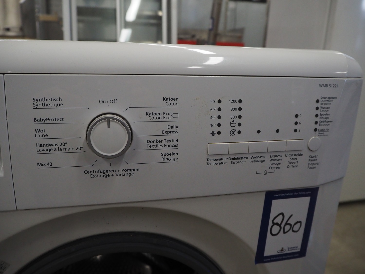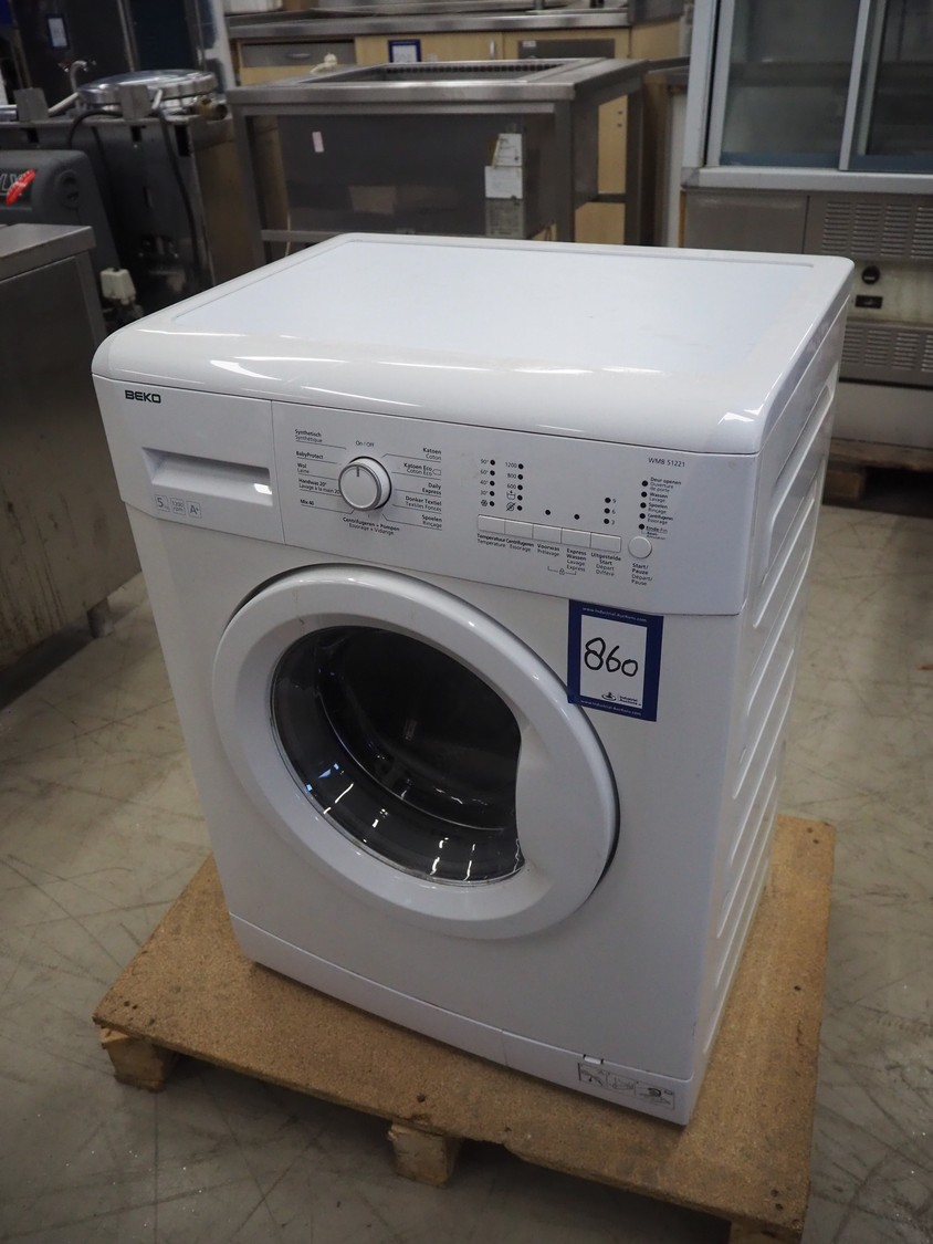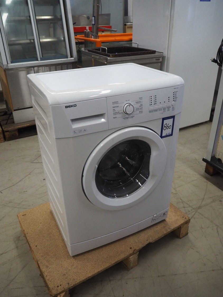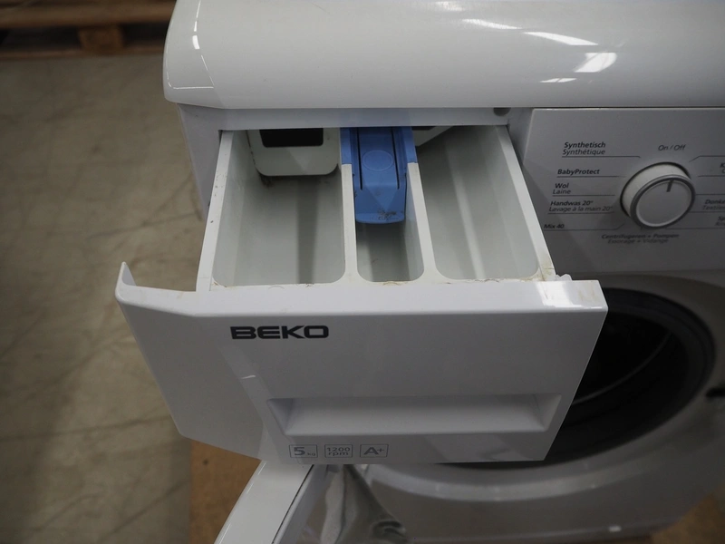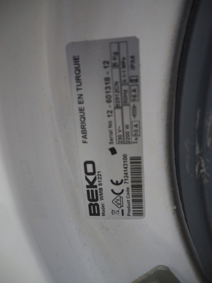 Beko dryer, model: WMB 51221, serial number: 12-601318-12, 230 V, 50 Hz, 16 A, 2200 Watt, capacity: 5 kg, dimensions: 600 mm x 450 mm x 840 mm.